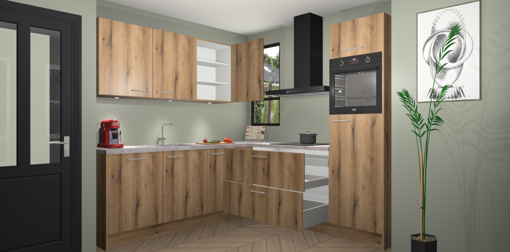 Als extra werd de prijs zo laag mogelijk vastgesteld, zonder aan de kwaliteit te raken. Zo heb je gegarandeerde Duitse keukenkwaliteit waarmee je jarenlang plezier beleeft aan het ontwerp. En dat alles wordt gecombineerd met een supersnelle service van maar liefst 7 weken!