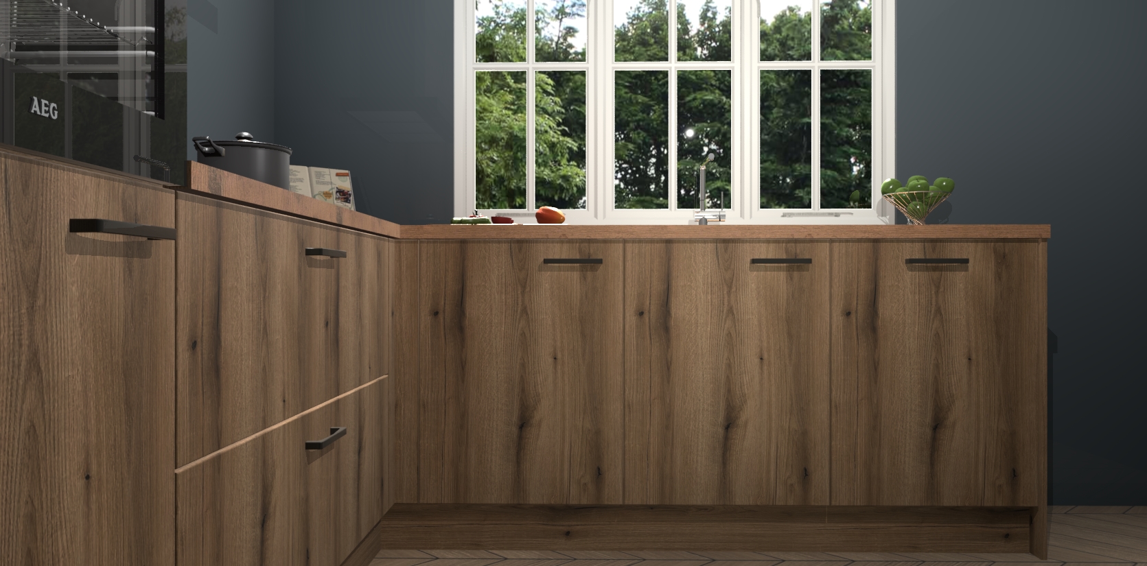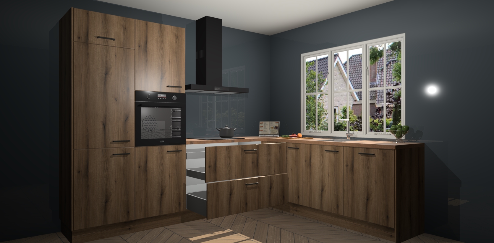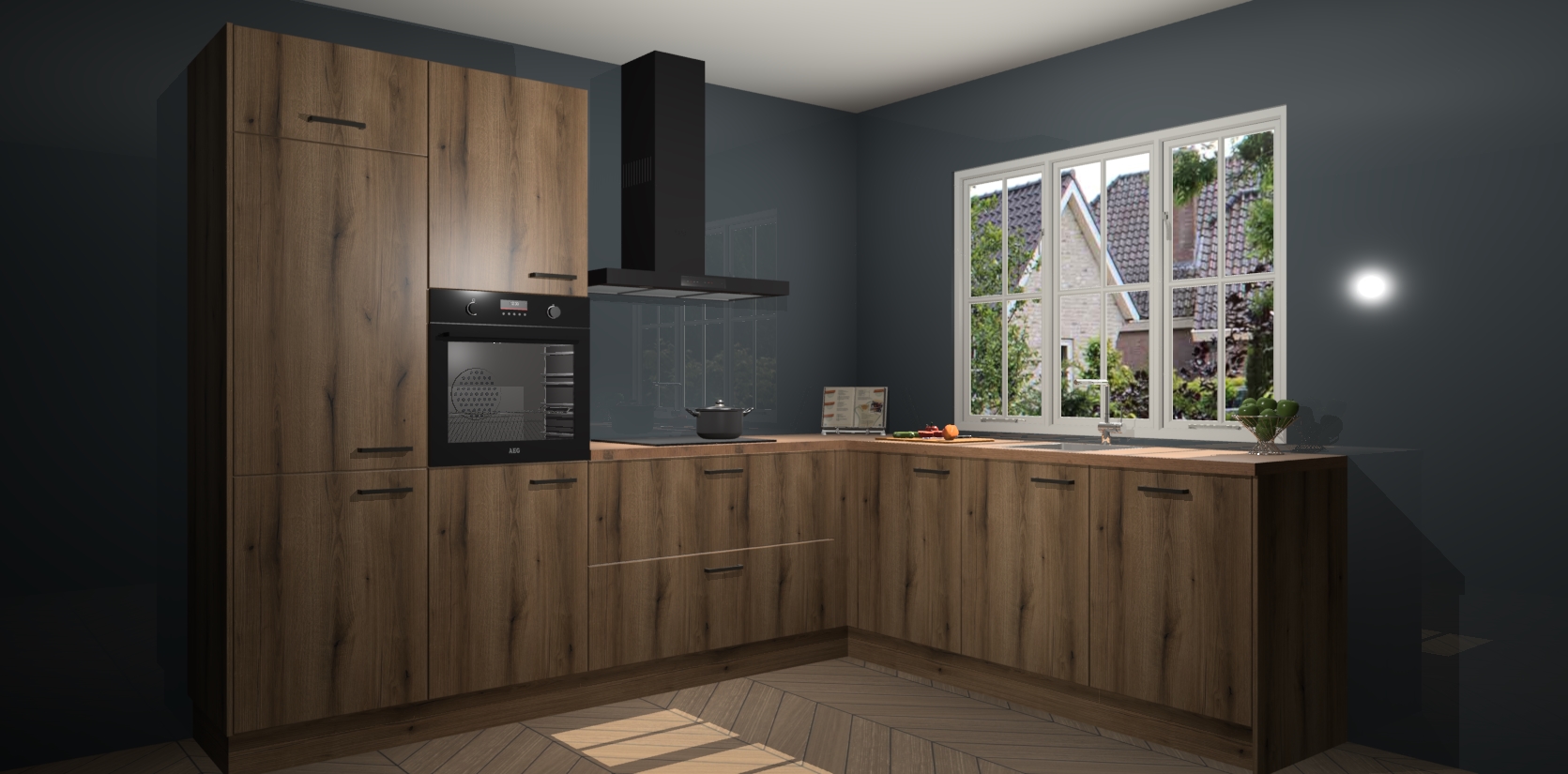 Heeft u genoeg van dezelfde keukenontwerpen die de markt overspoelen? Dan is de Goud Eiken keuken Kazan de juiste keuze voor u! Deze prachtige hoekkeuken heeft een modern en tijdloos design dat een elegant tintje geeft aan uw ruimte.