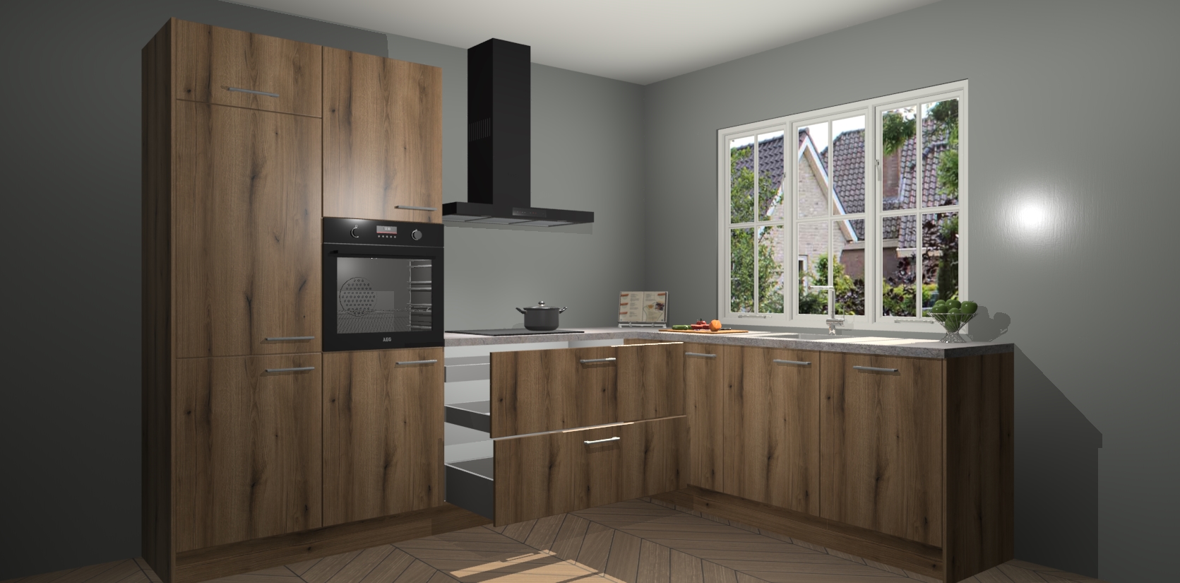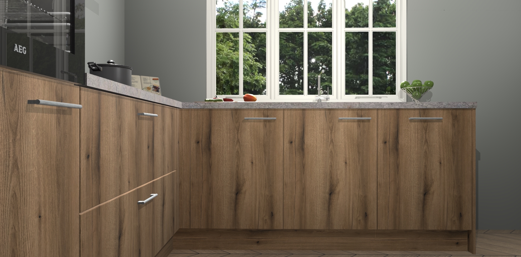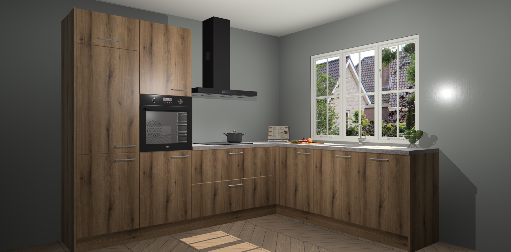 Heeft u genoeg van dezelfde keukenontwerpen die de markt overspoelen? Dan is de Goud Eiken keuken Kazan de juiste keuze voor u! Deze prachtige hoekkeuken heeft een modern en tijdloos design dat een elegant tintje geeft aan uw ruimte.