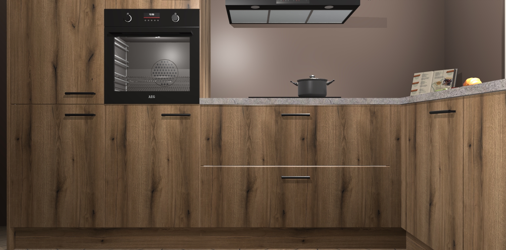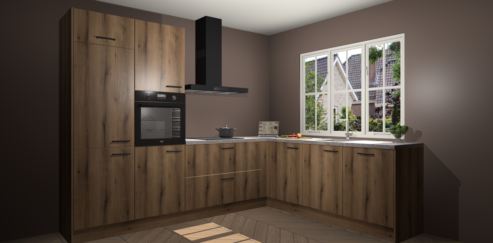 Heeft u genoeg van dezelfde keukenontwerpen die de markt overspoelen? Dan is de Goud Eiken keuken Kazan de juiste keuze voor u! Deze prachtige hoekkeuken heeft een modern en tijdloos design dat een elegant tintje geeft aan uw ruimte.