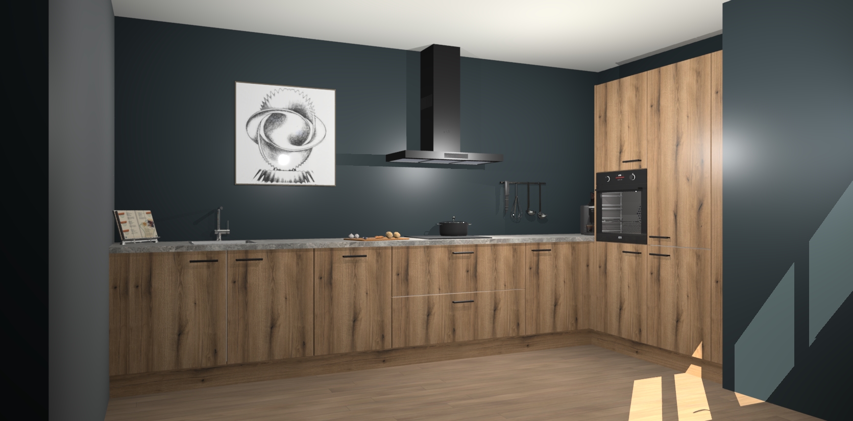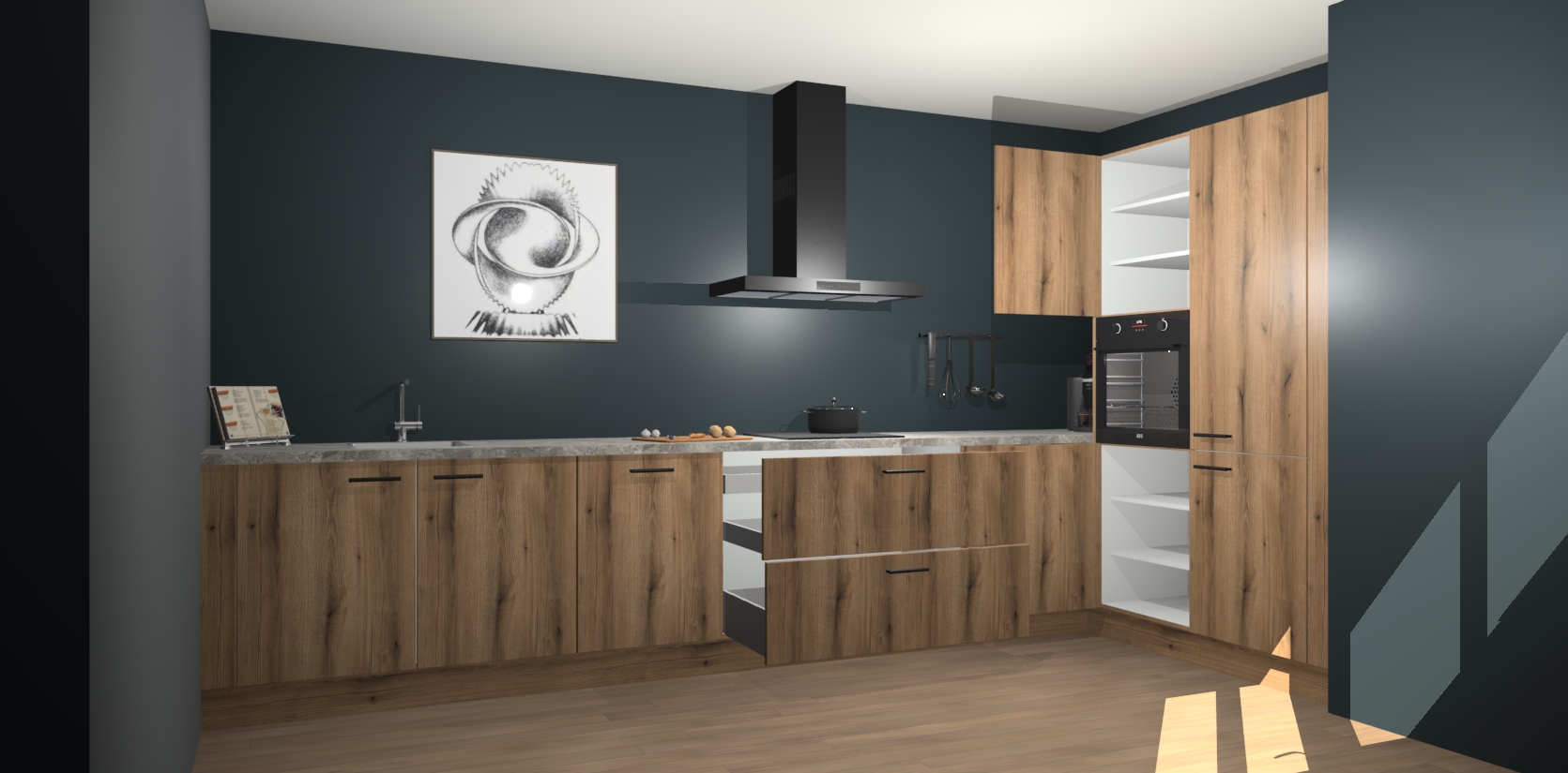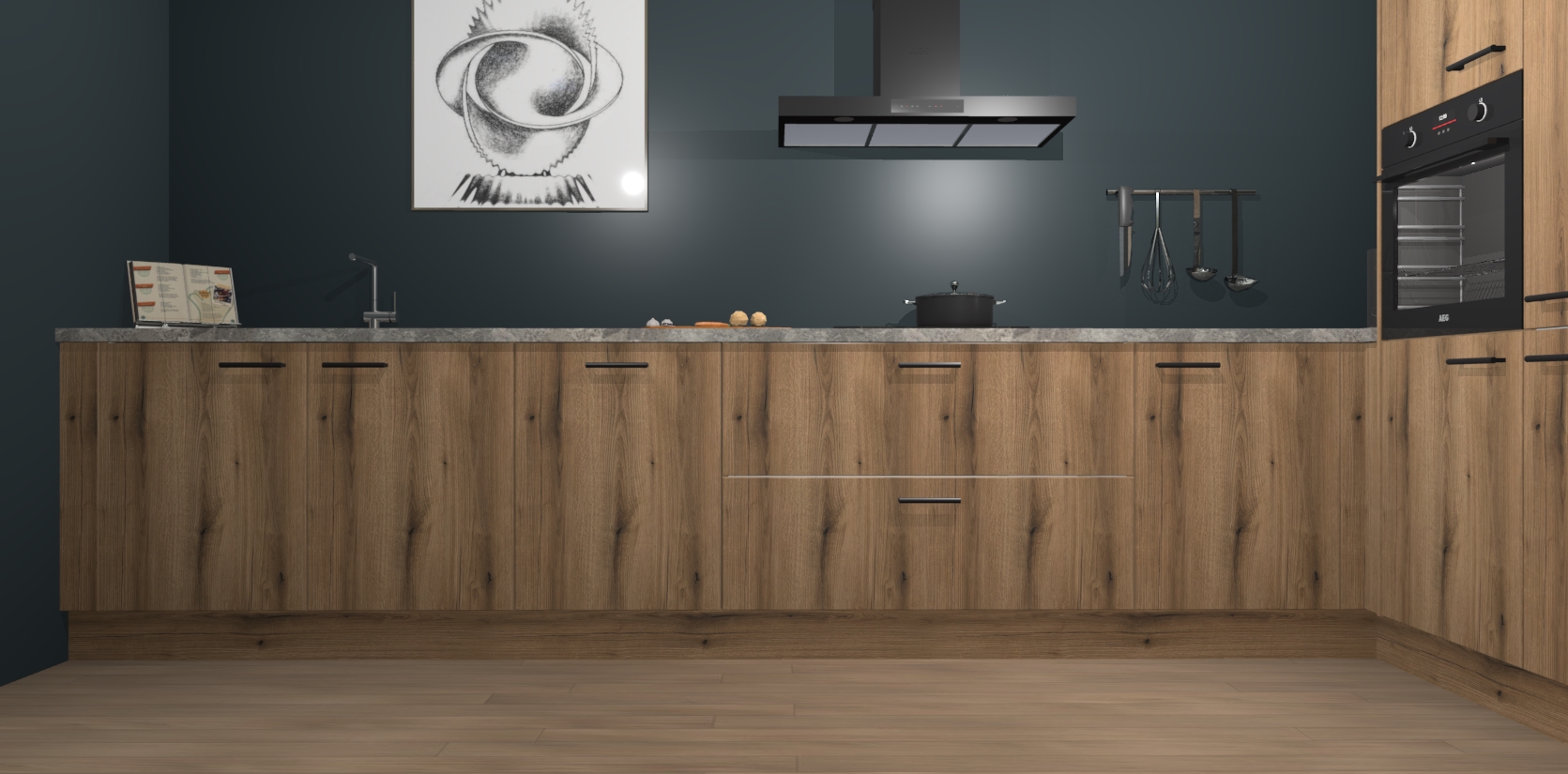 Welkom bij de Goud Eiken keuken Khao Lak. Deze prachtige keuken zal de komende jaren het middelpunt van de belangstelling in uw huis zijn. Uitgerust met vijf inbouwapparaten komt u nooit kookgereedschap tekort. Bovendien geeft de warme houtlook elke ruimte een uitnodigende en tijdloze uitstraling.