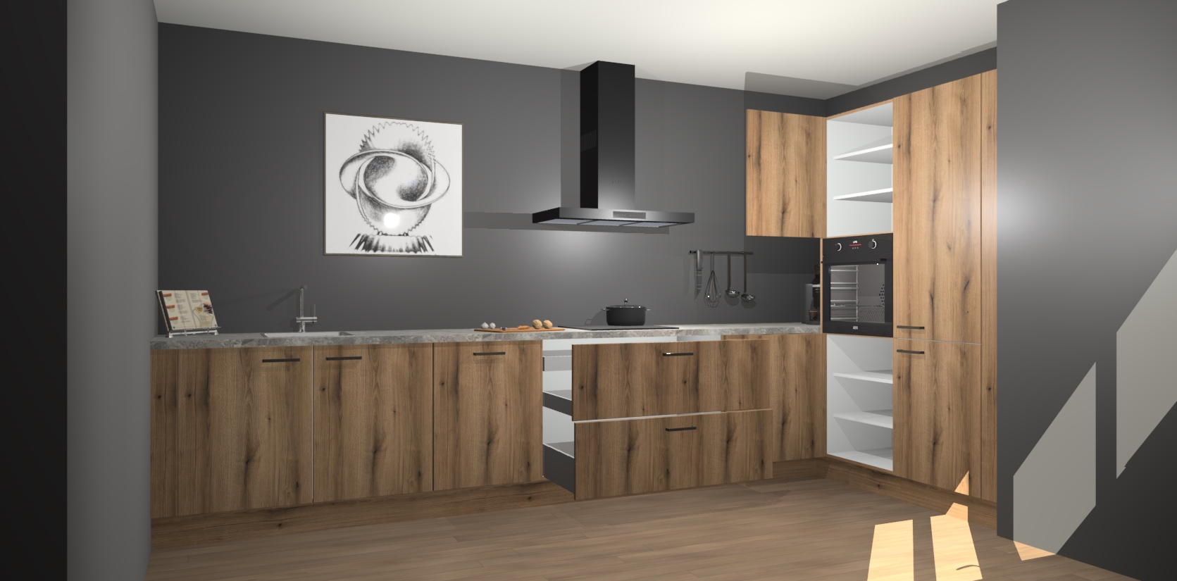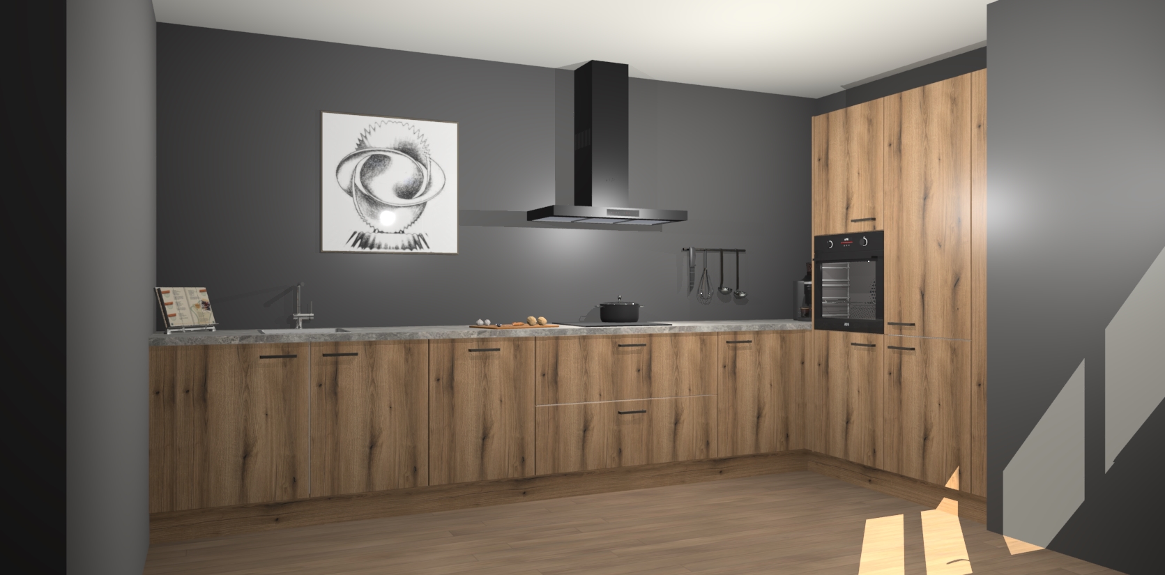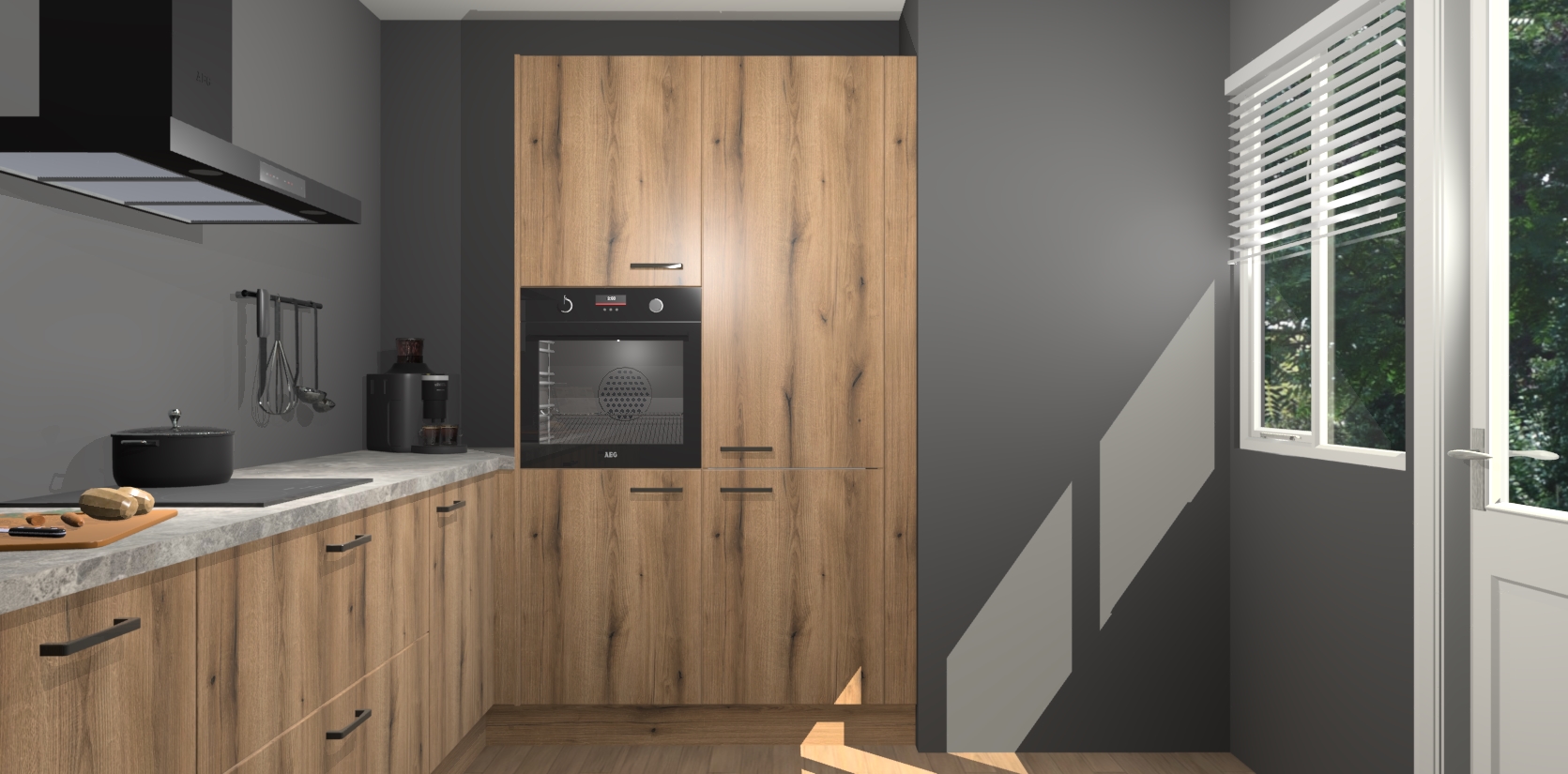Welkom bij de Goud Eiken keuken Khao Lak. Deze prachtige keuken zal de komende jaren het middelpunt van de belangstelling in uw huis zijn. Uitgerust met vijf inbouwapparaten komt u nooit kookgereedschap tekort. Bovendien geeft de warme houtlook elke ruimte een uitnodigende en tijdloze uitstraling.