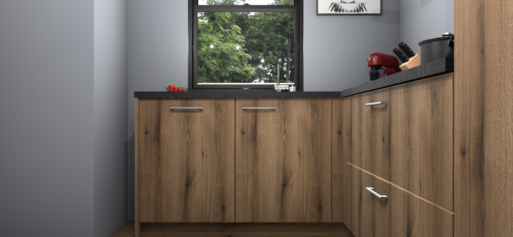In deze box zijn alle kleuren verzameld van de deuren en werkbladen. Vraag de gratis kleurenbox aan en kijk thuis rustig verder!