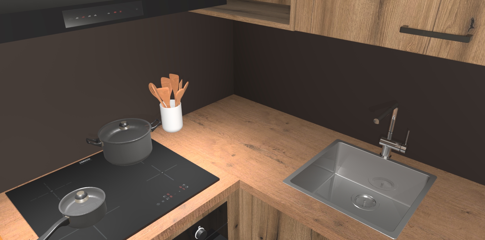 - Uitsparing van kookplaat, spoelbak en kraan dient u zelf te verzorgen.