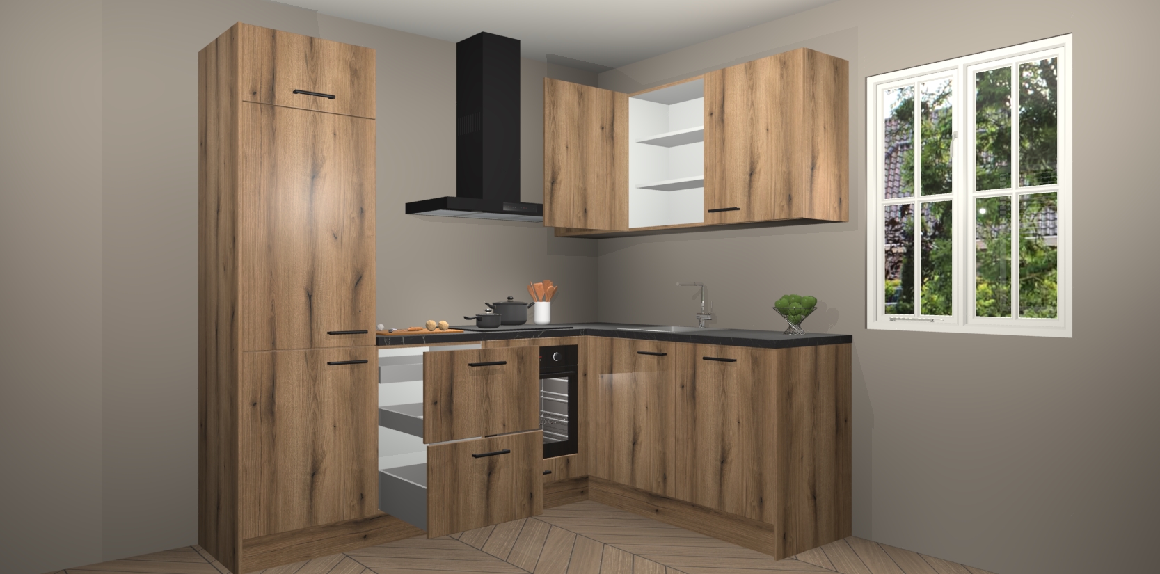 Bestellen was nog nooit zo makkelijk en we leveren met slechts 7 weken; zodra de keuken arriveert staan de kasten voor gemonteerd klaar om er alles aan te doen dat u hem gemakkelijk zelf kunt installeren! Eén ding is zeker: met de Goud Eiken keuken Krakau slaagt u erin modischer, modernere keukens uit te rusten die tientallen jaren meegaan! Haal snel uw Goud Eiken keuken Krakau - of u nu net begint of al 'levenservaring' hebt in de keukendroomloopbaan - want dit topmodel van onze collectie wilt u absoluut niet missen.