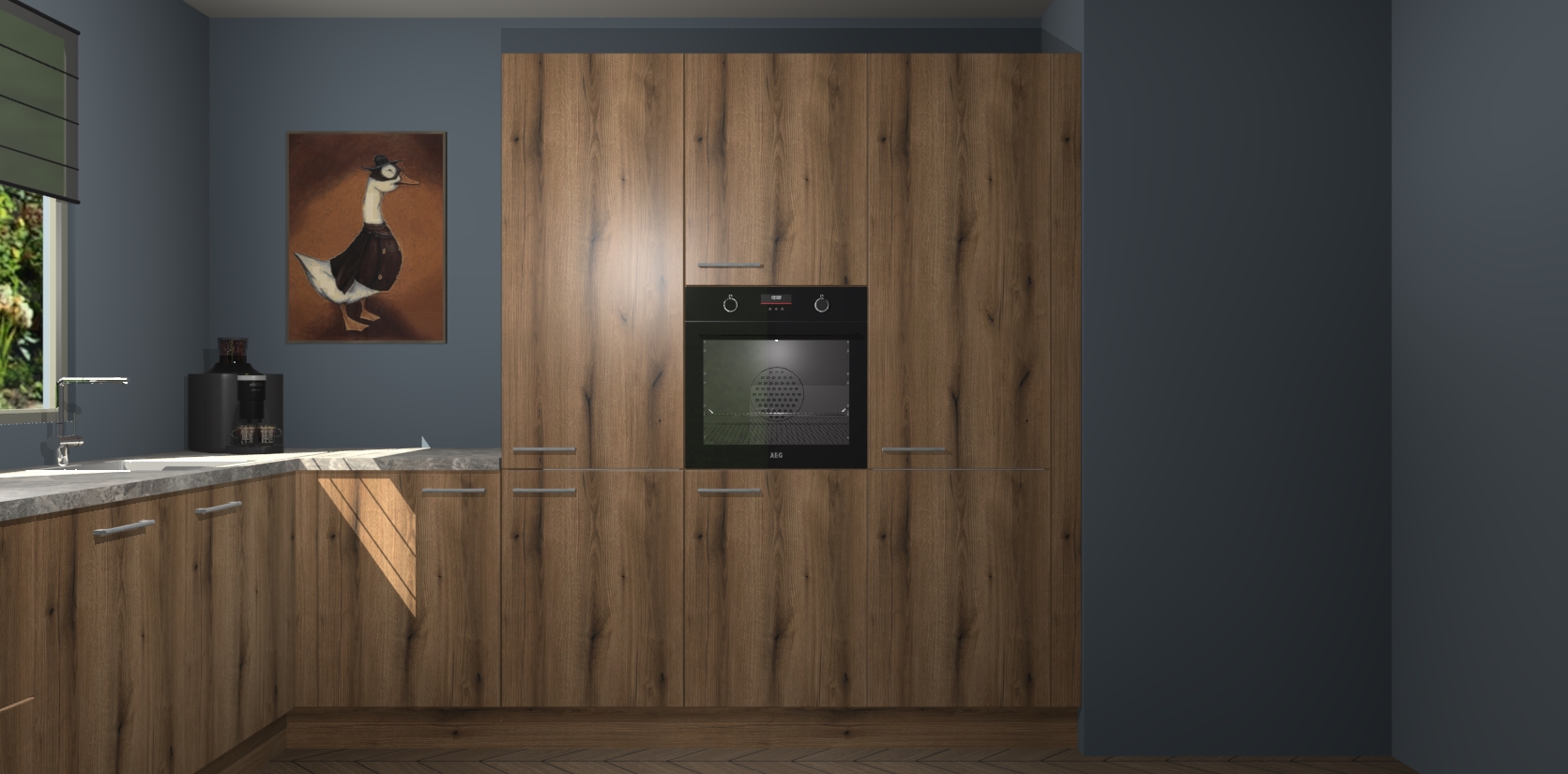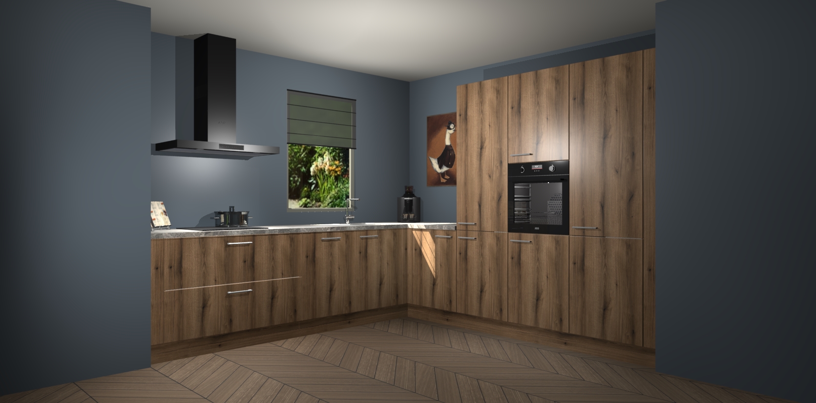 Welkom bij de Goud Eiken keuken Laos. Deze prachtige keuken zal de komende jaren het middelpunt van de belangstelling in uw huis zijn. Uitgerust met vijf inbouwapparaten komt u nooit kookgereedschap tekort. Bovendien geeft de warme houtlook elke ruimte een uitnodigende en tijdloze uitstraling.