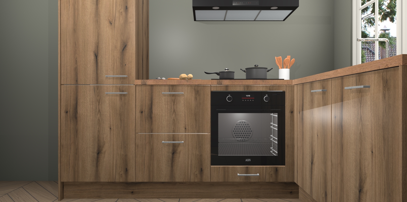 Met de Goud Eiken keuken Linz krijgt u 5 op maat gemaakte apparaten: een oven, inductiekookplaat, afzuigkap, vaatwasser en koelkast die na bestelling makkelijk worden geüpgraded naar AEG-producten. Met de zacht sluitende deuren, bent u verzekerd van eenvoudige bediening in stilte. Het kastmeubilair wordt alvast pre-assemblage geleverd waardoor u sneller met het installeren begint. Ook zijn alle deuren voorzien van softclose zodat er geen sporen op de lade blijven als u ze dicht doet. Bovendien hoeft u bij ons geen twijfels of verassingen te hebben: we hebben een vaste lage prijs waardoor u weet wat u mag verwachten bij elke bestelling.