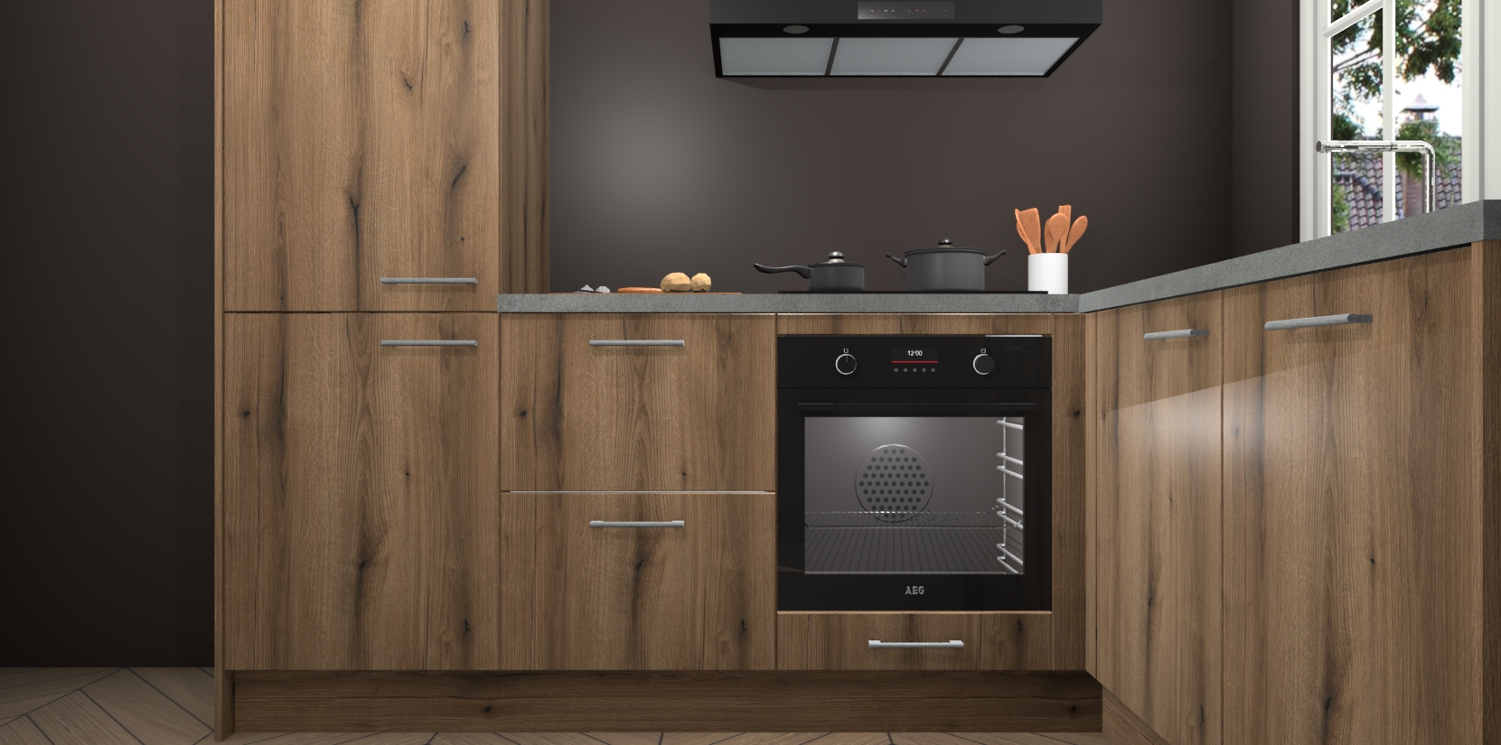 Met de Goud Eiken keuken Linz krijgt u 5 op maat gemaakte apparaten: een oven, inductiekookplaat, afzuigkap, vaatwasser en koelkast die na bestelling makkelijk worden geüpgraded naar AEG-producten. Met de zacht sluitende deuren, bent u verzekerd van eenvoudige bediening in stilte. Het kastmeubilair wordt alvast pre-assemblage geleverd waardoor u sneller met het installeren begint. Ook zijn alle deuren voorzien van softclose zodat er geen sporen op de lade blijven als u ze dicht doet. Bovendien hoeft u bij ons geen twijfels of verassingen te hebben: we hebben een vaste lage prijs waardoor u weet wat u mag verwachten bij elke bestelling.