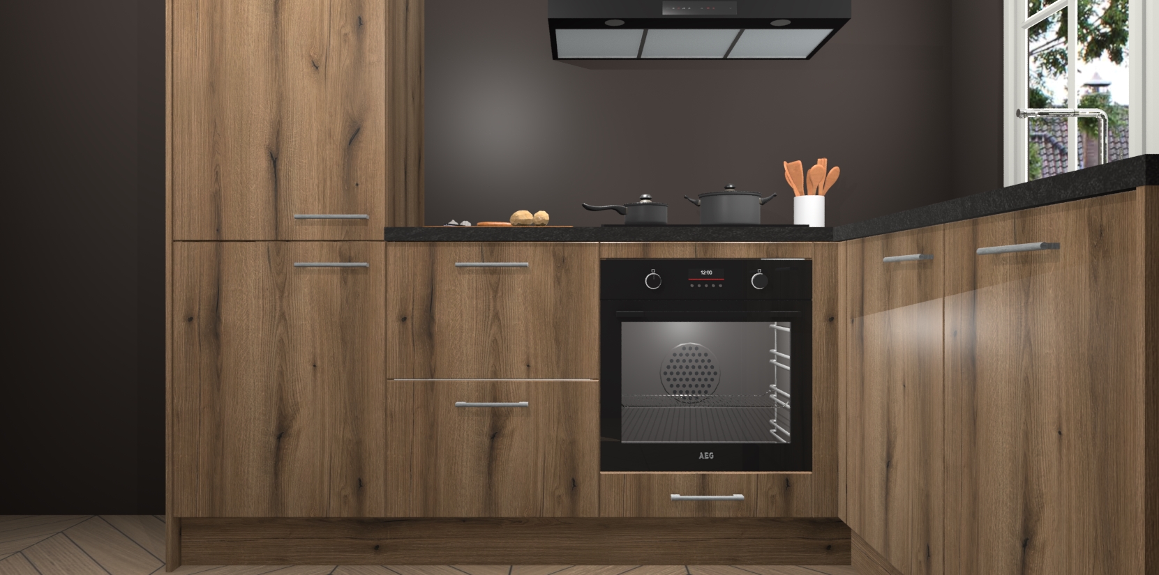 Met de Goud Eiken keuken Linz krijgt u 5 op maat gemaakte apparaten: een oven, inductiekookplaat, afzuigkap, vaatwasser en koelkast die na bestelling makkelijk worden geüpgraded naar AEG-producten. Met de zacht sluitende deuren, bent u verzekerd van eenvoudige bediening in stilte. Het kastmeubilair wordt alvast pre-assemblage geleverd waardoor u sneller met het installeren begint. Ook zijn alle deuren voorzien van softclose zodat er geen sporen op de lade blijven als u ze dicht doet. Bovendien hoeft u bij ons geen twijfels of verassingen te hebben: we hebben een vaste lage prijs waardoor u weet wat u mag verwachten bij elke bestelling.