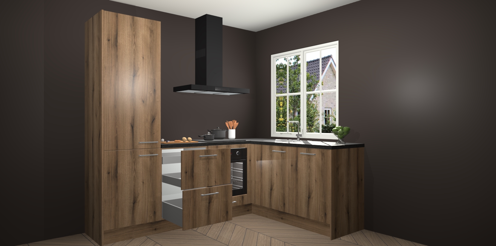 Het grote voordeel is dat uw Goud Eiken keuken Linz wordt geleverd met een beperkte levertijd van slechts 7 weken! Daarom moet u er snel bij zijn; want als u dit fantastische meubilair mist, kan niets anders dan spijt voelen. Ga direct aan de slag met uw droomkeuken door nu de Goud Eiken keuken Linz te bestellen - duizend woorden plaatjes in één woord: perfectie.