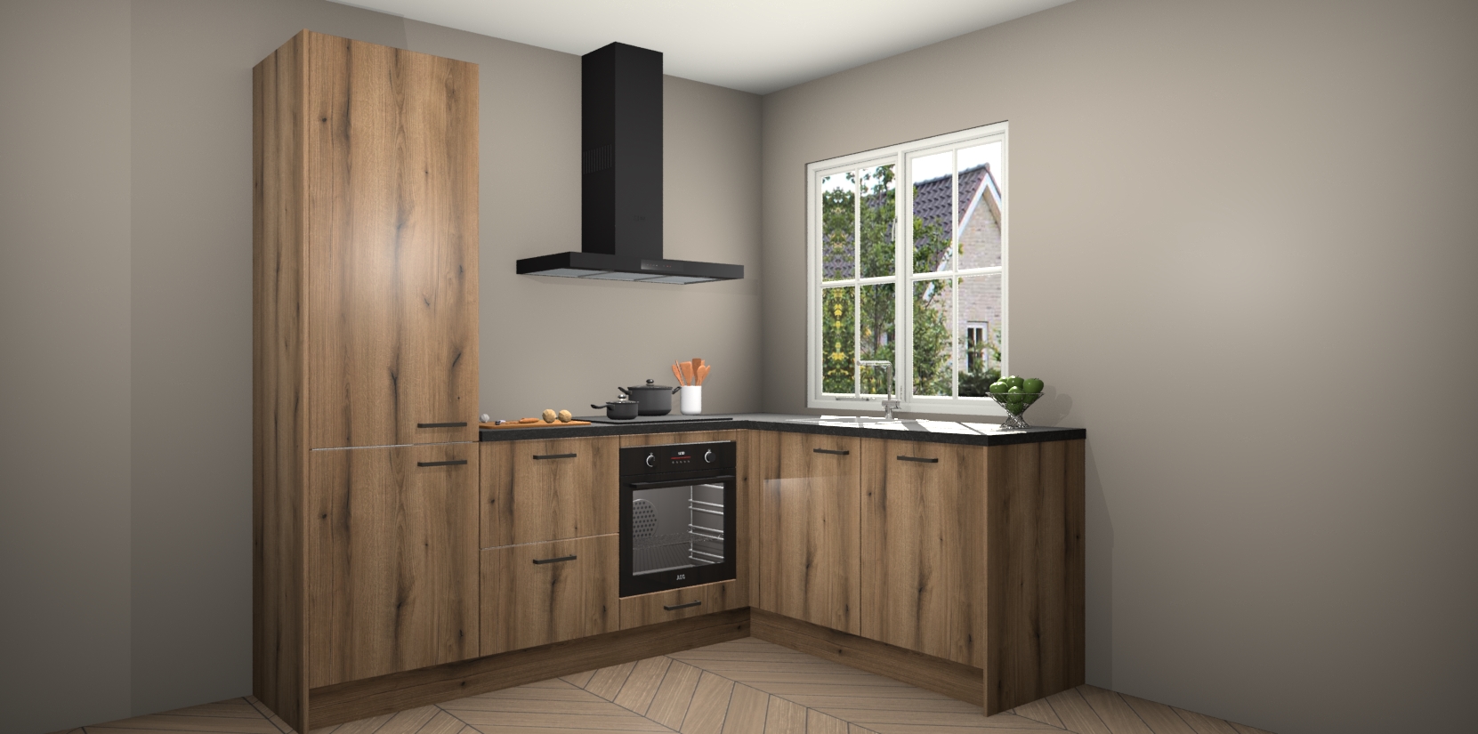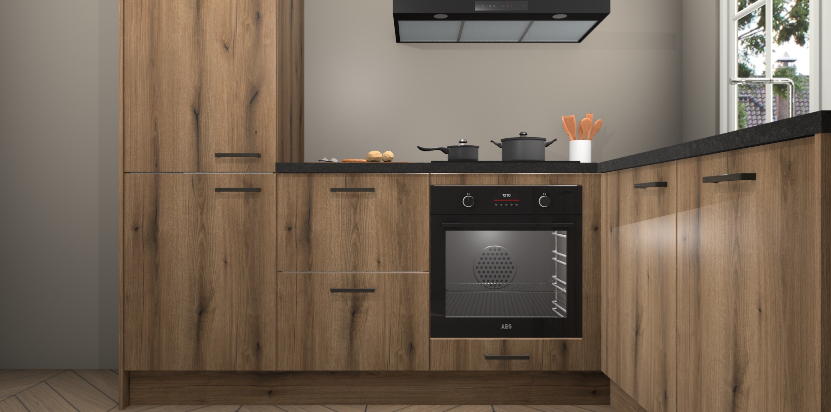 Met de Goud Eiken keuken Linz krijgt u 5 op maat gemaakte apparaten: een oven, inductiekookplaat, afzuigkap, vaatwasser en koelkast die na bestelling makkelijk worden geüpgraded naar AEG-producten. Met de zacht sluitende deuren, bent u verzekerd van eenvoudige bediening in stilte. Het kastmeubilair wordt alvast pre-assemblage geleverd waardoor u sneller met het installeren begint. Ook zijn alle deuren voorzien van softclose zodat er geen sporen op de lade blijven als u ze dicht doet. Bovendien hoeft u bij ons geen twijfels of verassingen te hebben: we hebben een vaste lage prijs waardoor u weet wat u mag verwachten bij elke bestelling.