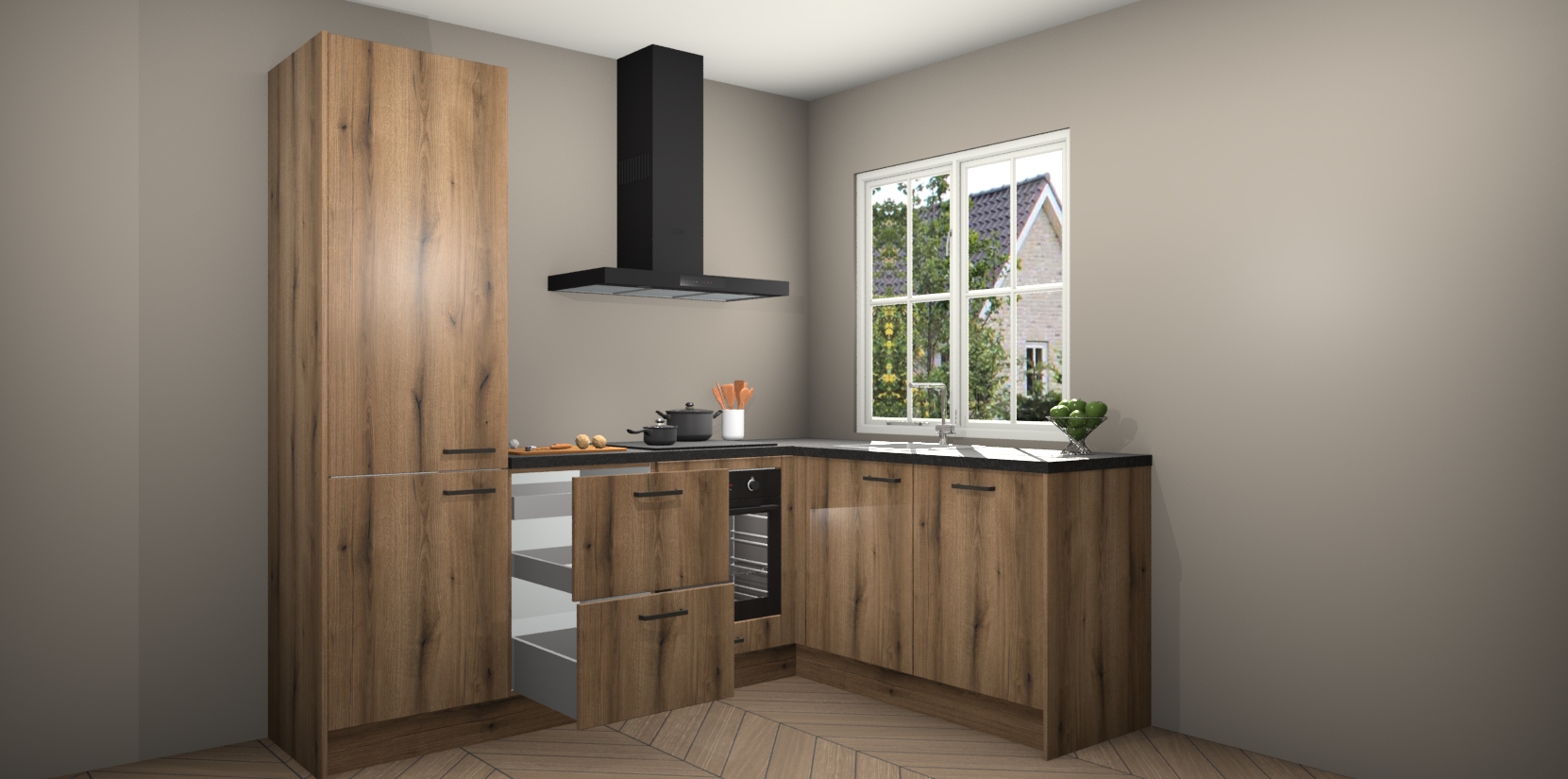 Het grote voordeel is dat uw Goud Eiken keuken Linz wordt geleverd met een beperkte levertijd van slechts 7 weken! Daarom moet u er snel bij zijn; want als u dit fantastische meubilair mist, kan niets anders dan spijt voelen. Ga direct aan de slag met uw droomkeuken door nu de Goud Eiken keuken Linz te bestellen - duizend woorden plaatjes in één woord: perfectie.