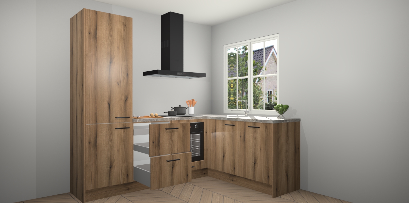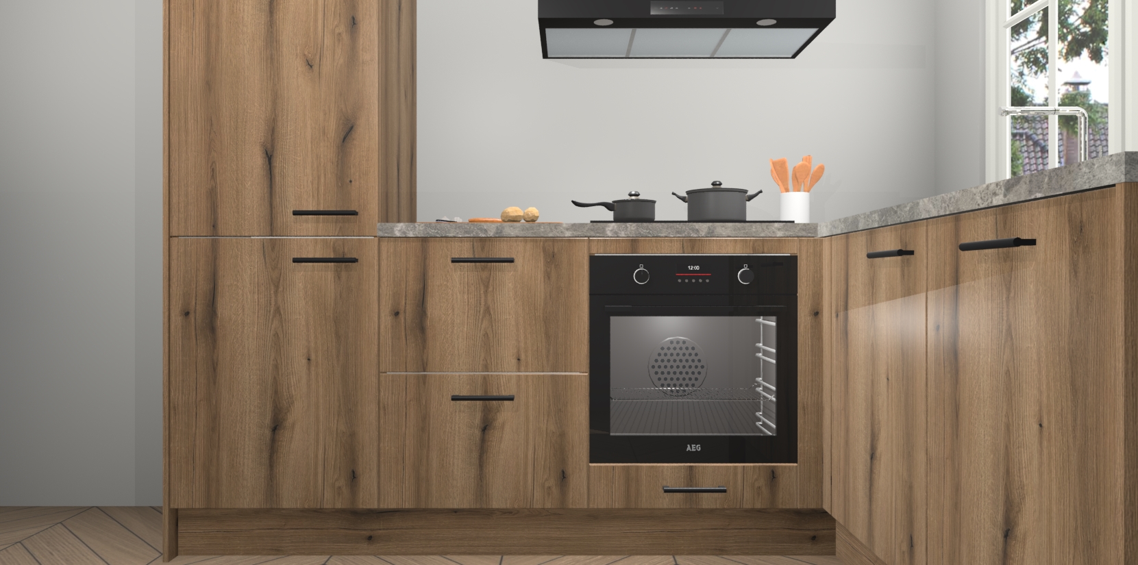 Met de Goud Eiken keuken Linz krijgt u 5 op maat gemaakte apparaten: een oven, inductiekookplaat, afzuigkap, vaatwasser en koelkast die na bestelling makkelijk worden geüpgraded naar AEG-producten. Met de zacht sluitende deuren, bent u verzekerd van eenvoudige bediening in stilte. Het kastmeubilair wordt alvast pre-assemblage geleverd waardoor u sneller met het installeren begint. Ook zijn alle deuren voorzien van softclose zodat er geen sporen op de lade blijven als u ze dicht doet. Bovendien hoeft u bij ons geen twijfels of verassingen te hebben: we hebben een vaste lage prijs waardoor u weet wat u mag verwachten bij elke bestelling.