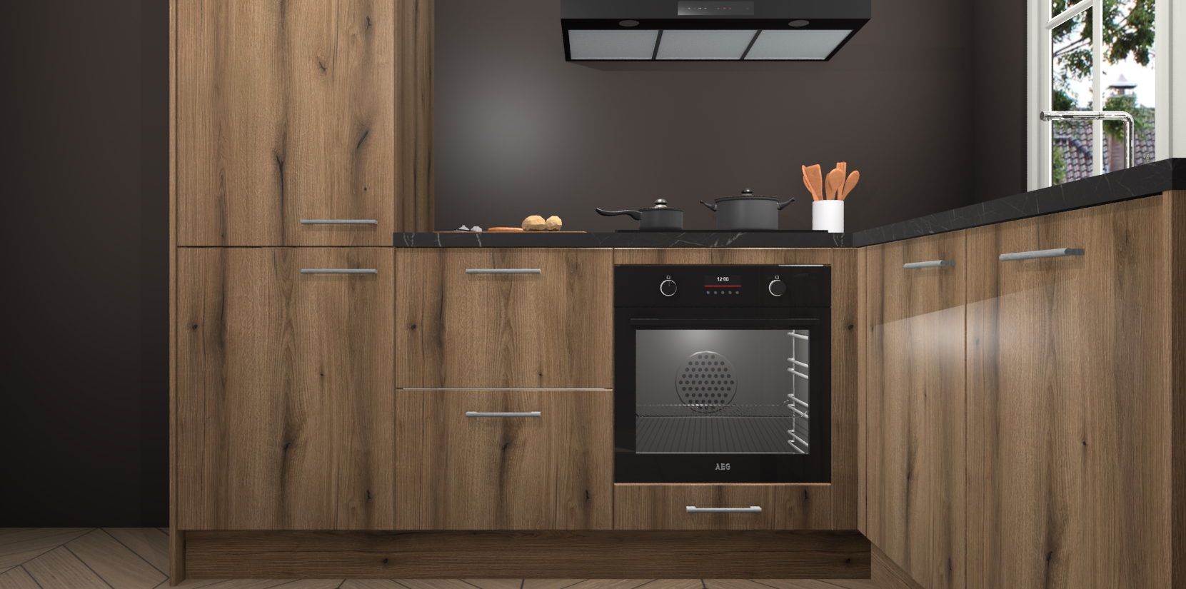 Met de Goud Eiken keuken Linz krijgt u 5 op maat gemaakte apparaten: een oven, inductiekookplaat, afzuigkap, vaatwasser en koelkast die na bestelling makkelijk worden geüpgraded naar AEG-producten. Met de zacht sluitende deuren, bent u verzekerd van eenvoudige bediening in stilte. Het kastmeubilair wordt alvast pre-assemblage geleverd waardoor u sneller met het installeren begint. Ook zijn alle deuren voorzien van softclose zodat er geen sporen op de lade blijven als u ze dicht doet. Bovendien hoeft u bij ons geen twijfels of verassingen te hebben: we hebben een vaste lage prijs waardoor u weet wat u mag verwachten bij elke bestelling.