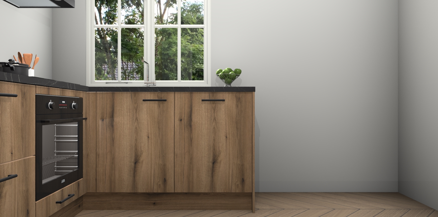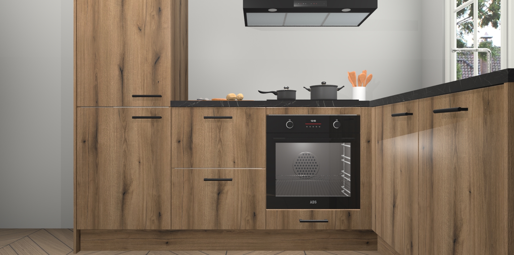 Met de Goud Eiken keuken Linz krijgt u 5 op maat gemaakte apparaten: een oven, inductiekookplaat, afzuigkap, vaatwasser en koelkast die na bestelling makkelijk worden geüpgraded naar AEG-producten. Met de zacht sluitende deuren, bent u verzekerd van eenvoudige bediening in stilte. Het kastmeubilair wordt alvast pre-assemblage geleverd waardoor u sneller met het installeren begint. Ook zijn alle deuren voorzien van softclose zodat er geen sporen op de lade blijven als u ze dicht doet. Bovendien hoeft u bij ons geen twijfels of verassingen te hebben: we hebben een vaste lage prijs waardoor u weet wat u mag verwachten bij elke bestelling.