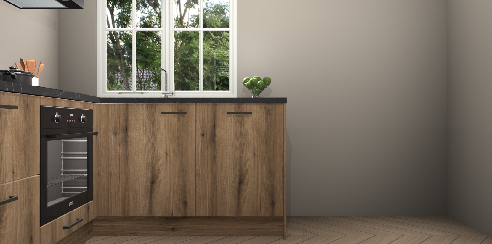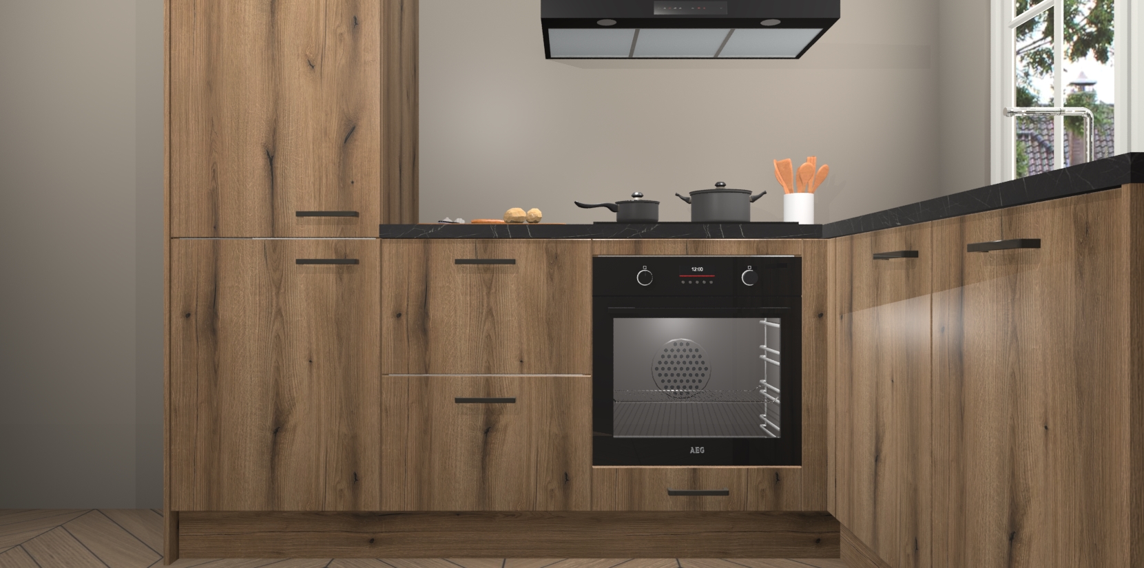 Met de Goud Eiken keuken Linz krijgt u 5 op maat gemaakte apparaten: een oven, inductiekookplaat, afzuigkap, vaatwasser en koelkast die na bestelling makkelijk worden geüpgraded naar AEG-producten. Met de zacht sluitende deuren, bent u verzekerd van eenvoudige bediening in stilte. Het kastmeubilair wordt alvast pre-assemblage geleverd waardoor u sneller met het installeren begint. Ook zijn alle deuren voorzien van softclose zodat er geen sporen op de lade blijven als u ze dicht doet. Bovendien hoeft u bij ons geen twijfels of verassingen te hebben: we hebben een vaste lage prijs waardoor u weet wat u mag verwachten bij elke bestelling.