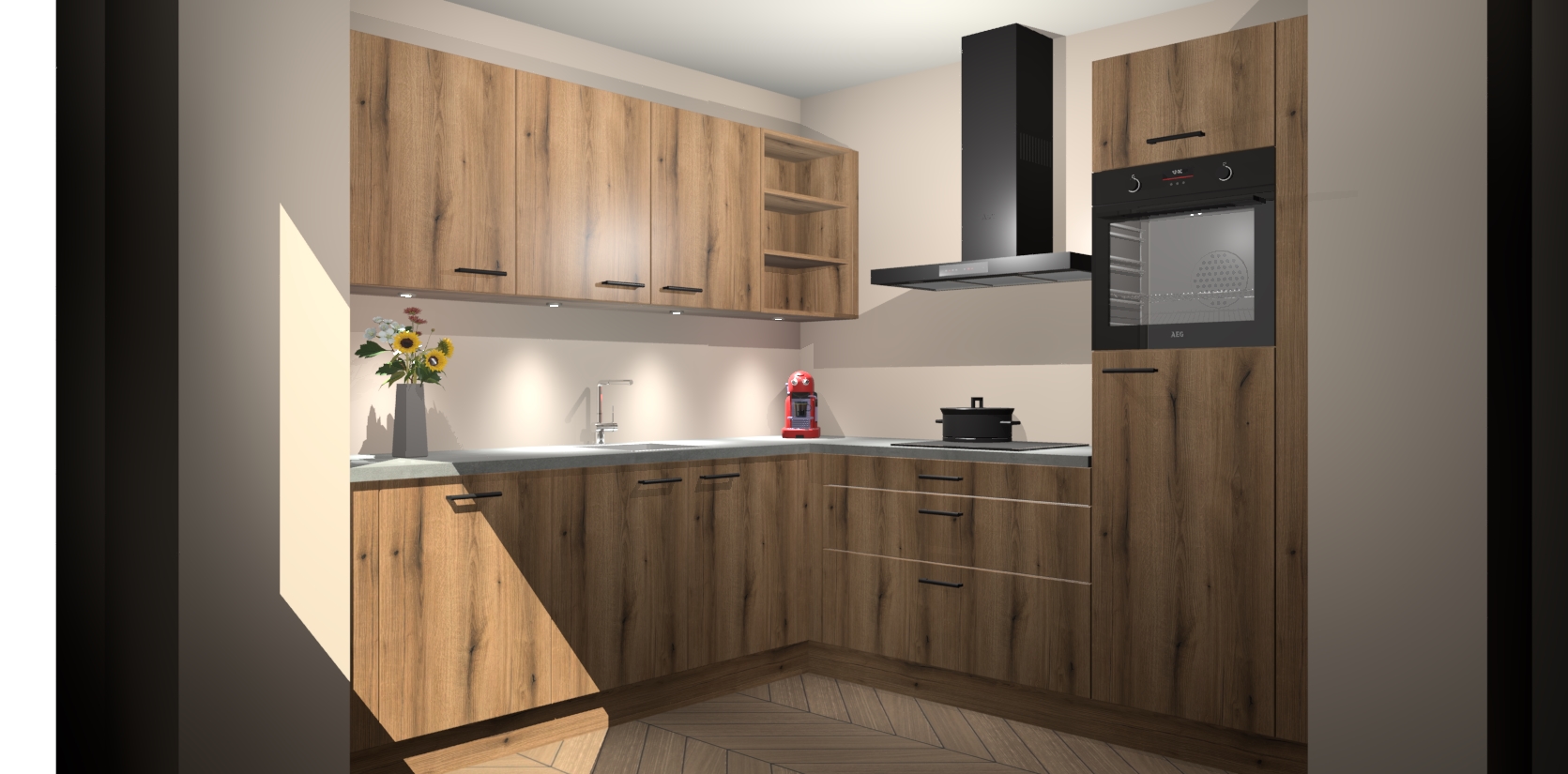 Wij presenteren de revolutie in keukens: de goud eiken keuken Luanda. Met modern design, een tijdloos uiterlijk en kasten die al voor gemonteerd worden geleverd, laat deze stijlvolle keuken uw kookervaring op een hele nieuwe manier transformeren.