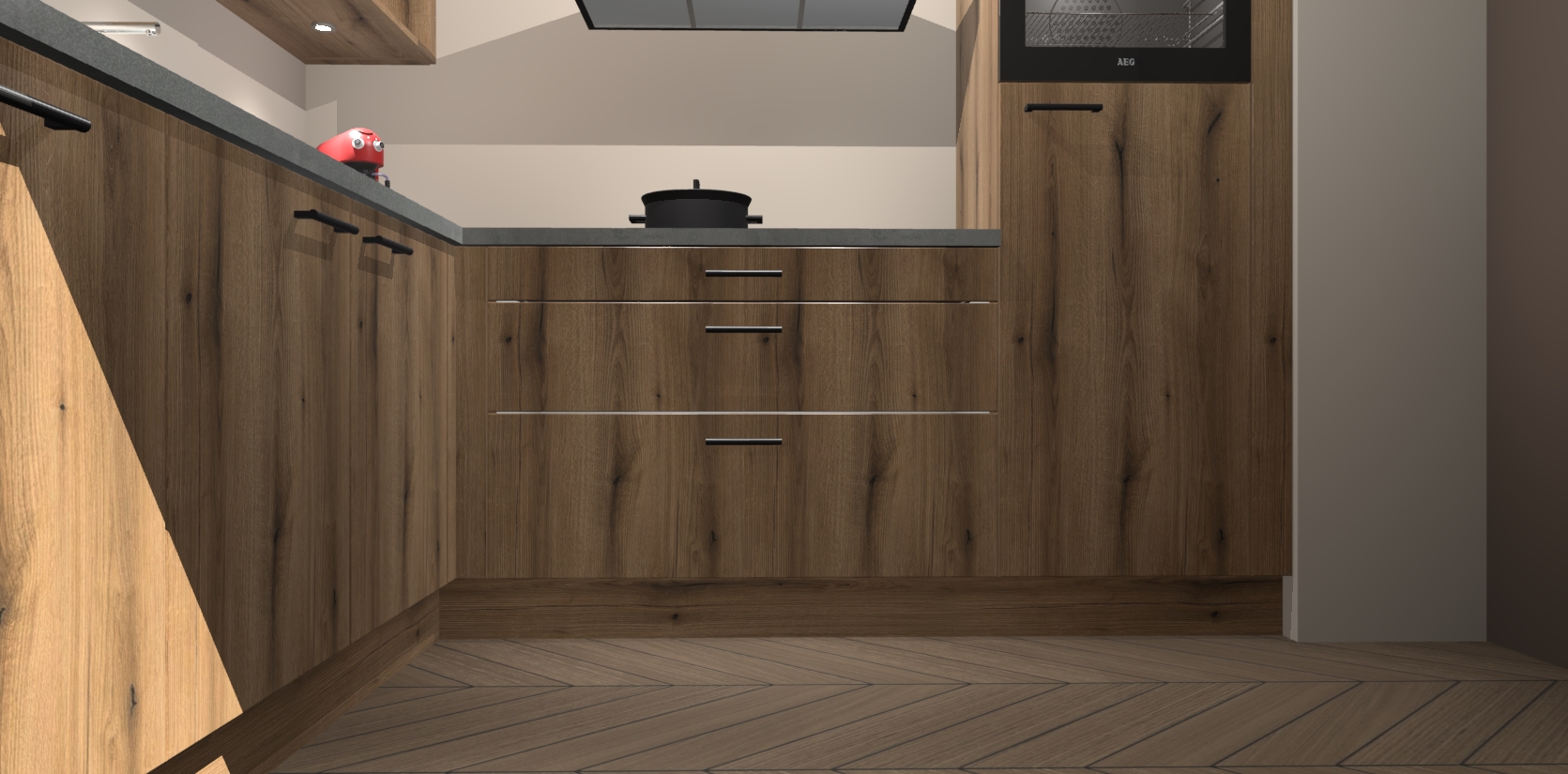 Met een modern, tijdloos design en ruime opslagruimte, zult u zich in no-time thuis voelen in uw nieuwe keuken. Uw leven wordt eenvoudiger met de soft-close deuren die voor het ultieme stille comfort zorgen - geen geluid dat u stoort terwijl u kookt. Ook is de keuken voorzien van 5 ingebouwde apparaten: een oven, inductie kookplaat, afzuigkap, vaatwasser en koelkast. Deze kunnen gemakkelijk na bestelling worden bijgewerkt naar AEG - waardoor uw luxe ervaring compleet is.