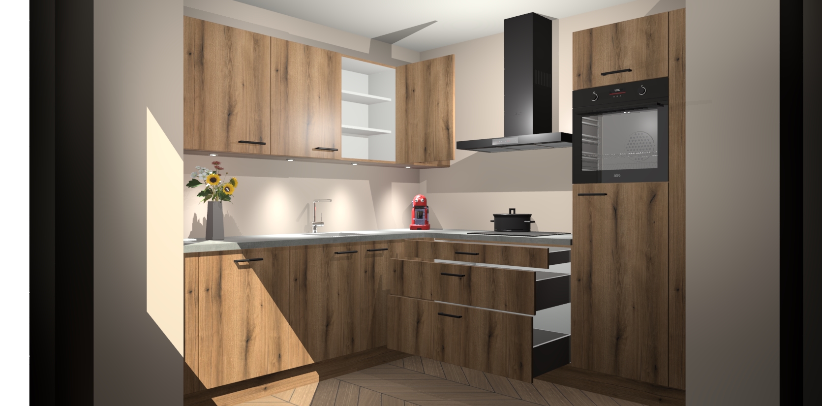 En dat is nog niet alles - de goud eiken keuken Luanda wordt ook heel snel geleverd met 7 weken! De prijs is vastgesteld zodat u nooit onaangenaam verrast word door onverwachte kosten. Al binnen twee maanden kunt u beginnen te genieten van optimale functionaliteit in luxueuze stijl - wat wilt u nog meer? Bestel nu uw goud eiken keuken Luanda en ervaar ongekende flexibiliteit en stijlvol design!