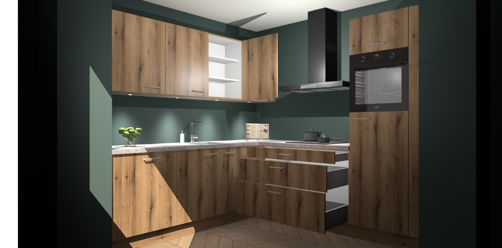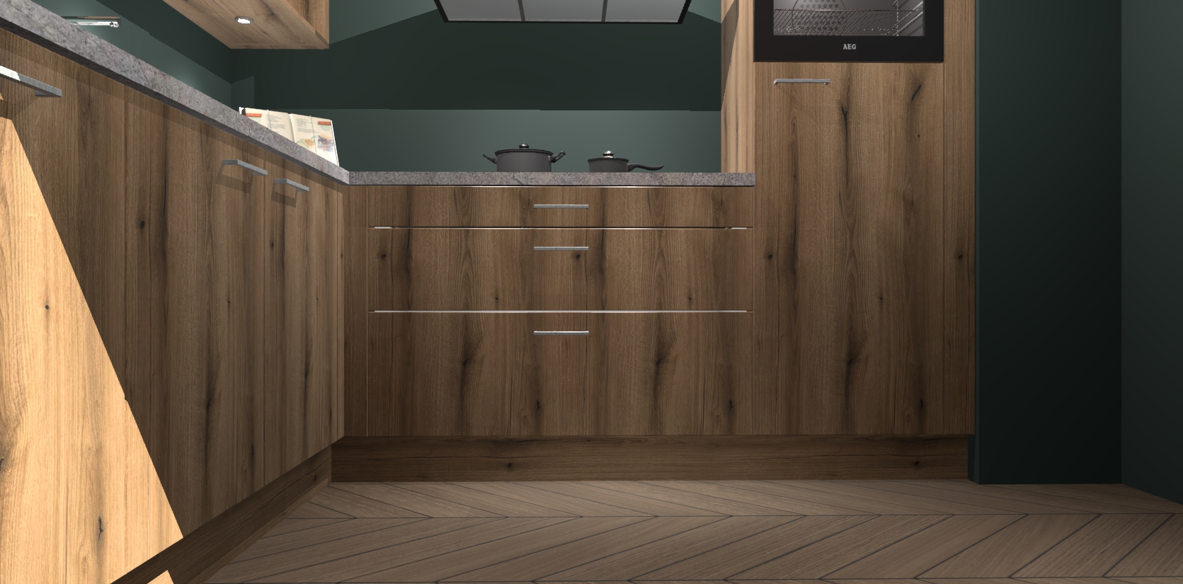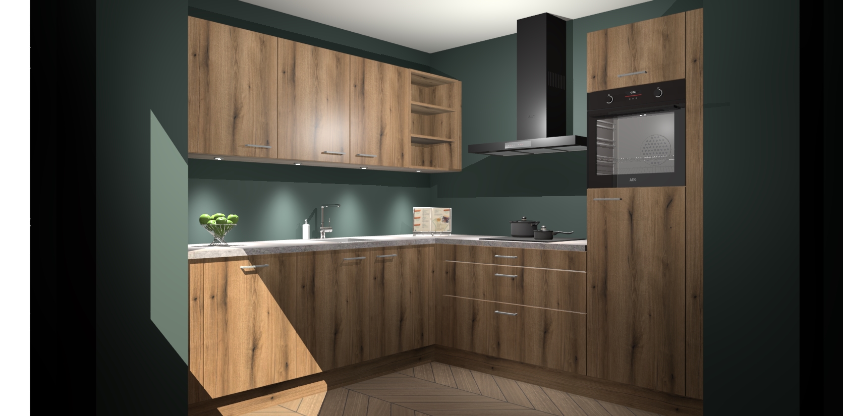 Met een modern, tijdloos design en ruime opslagruimte, zult u zich in no-time thuis voelen in uw nieuwe keuken. Uw leven wordt eenvoudiger met de soft-close deuren die voor het ultieme stille comfort zorgen - geen geluid dat u stoort terwijl u kookt. Ook is de keuken voorzien van 5 ingebouwde apparaten: een oven, inductie kookplaat, afzuigkap, vaatwasser en koelkast. Deze kunnen gemakkelijk na bestelling worden bijgewerkt naar AEG - waardoor uw luxe ervaring compleet is.