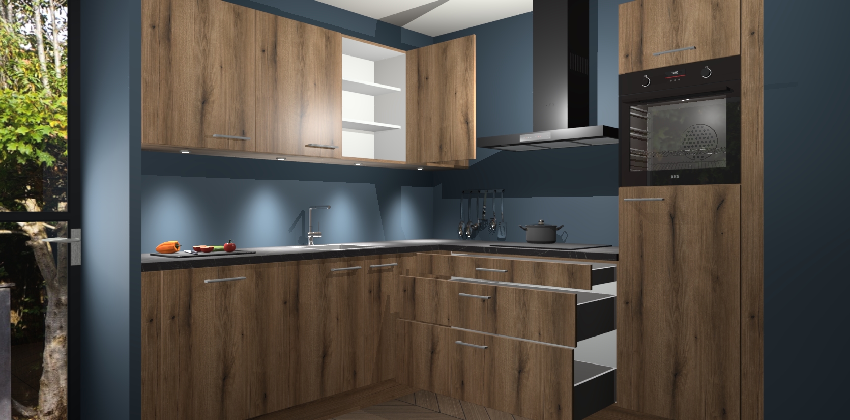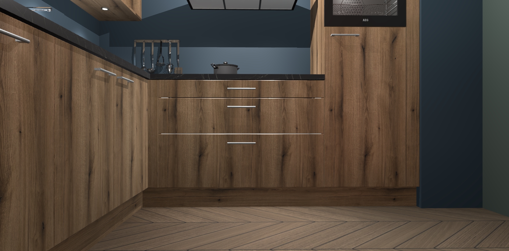 Met een modern, tijdloos design en ruime opslagruimte, zult u zich in no-time thuis voelen in uw nieuwe keuken. Uw leven wordt eenvoudiger met de soft-close deuren die voor het ultieme stille comfort zorgen - geen geluid dat u stoort terwijl u kookt. Ook is de keuken voorzien van 5 ingebouwde apparaten: een oven, inductie kookplaat, afzuigkap, vaatwasser en koelkast. Deze kunnen gemakkelijk na bestelling worden bijgewerkt naar AEG - waardoor uw luxe ervaring compleet is.