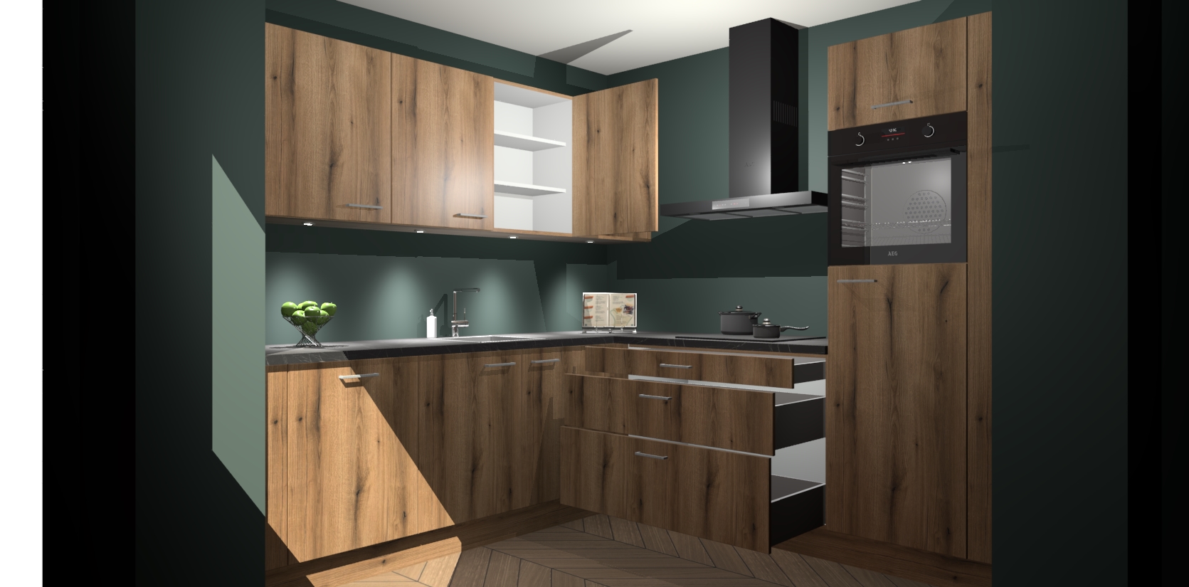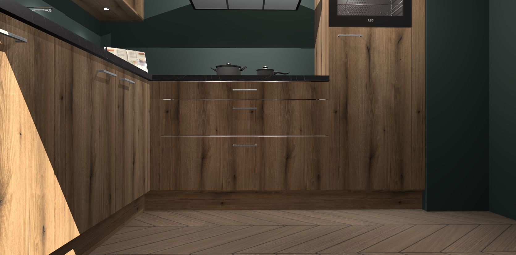 Met een modern, tijdloos design en ruime opslagruimte, zult u zich in no-time thuis voelen in uw nieuwe keuken. Uw leven wordt eenvoudiger met de soft-close deuren die voor het ultieme stille comfort zorgen - geen geluid dat u stoort terwijl u kookt. Ook is de keuken voorzien van 5 ingebouwde apparaten: een oven, inductie kookplaat, afzuigkap, vaatwasser en koelkast. Deze kunnen gemakkelijk na bestelling worden bijgewerkt naar AEG - waardoor uw luxe ervaring compleet is.