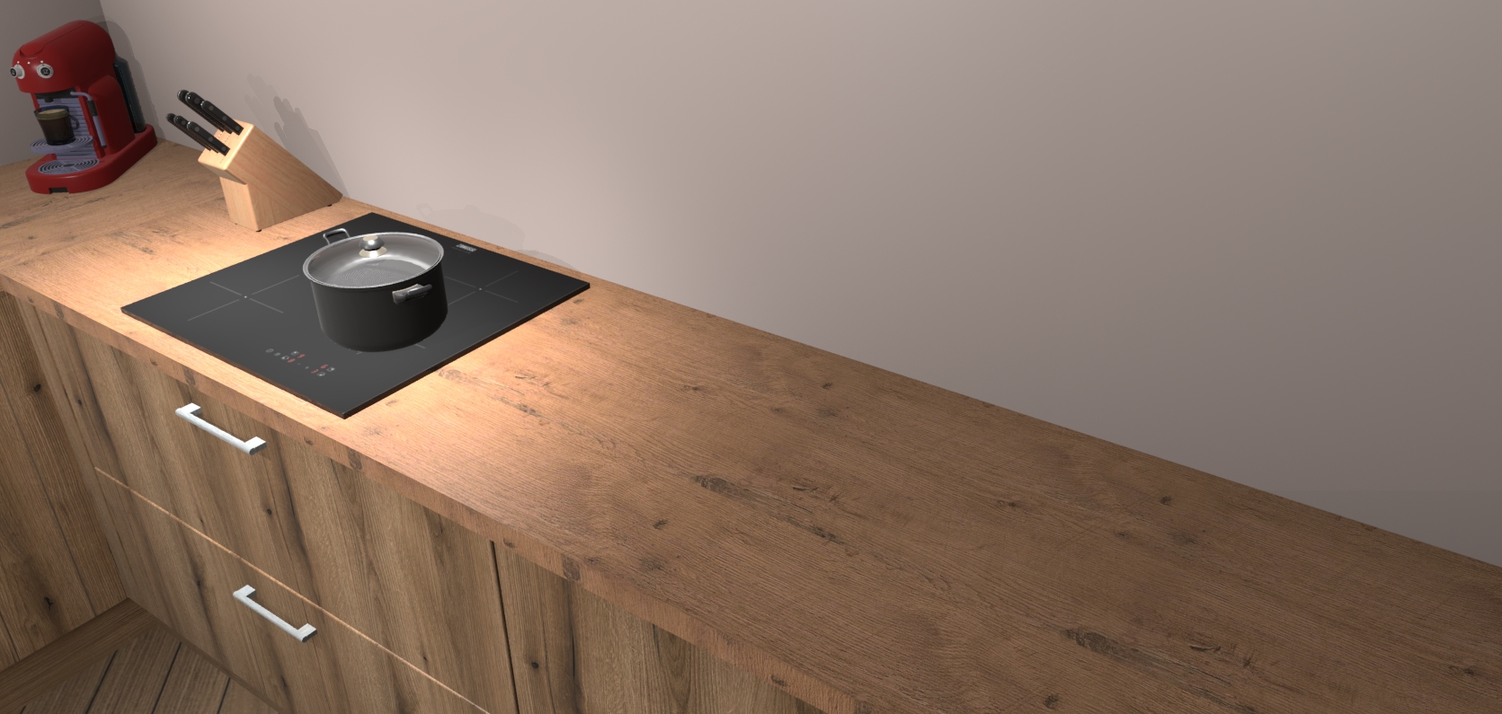 - Bij een hoekwerkblad zijn de hoeken in gevreesd en op maat gemaakt