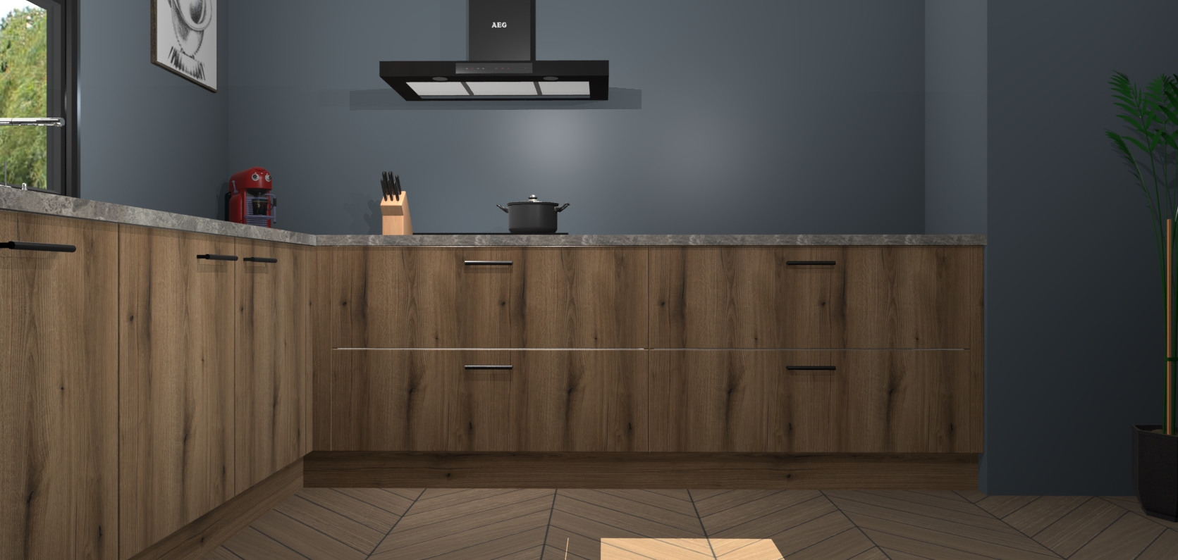 Inclusief plinten, stelpoten en werkblad