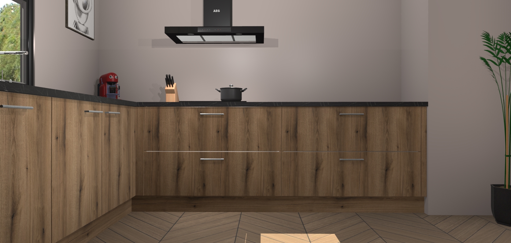 Inclusief plinten, stelpoten en werkblad