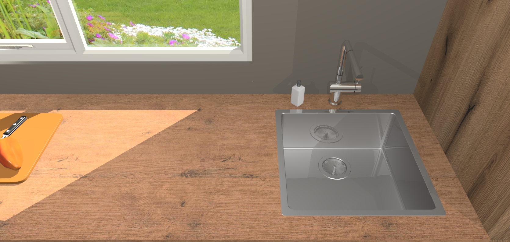 - De spoelbak is nog niet in gevreesd. Dit dient tijdens het werk gedaan te worden