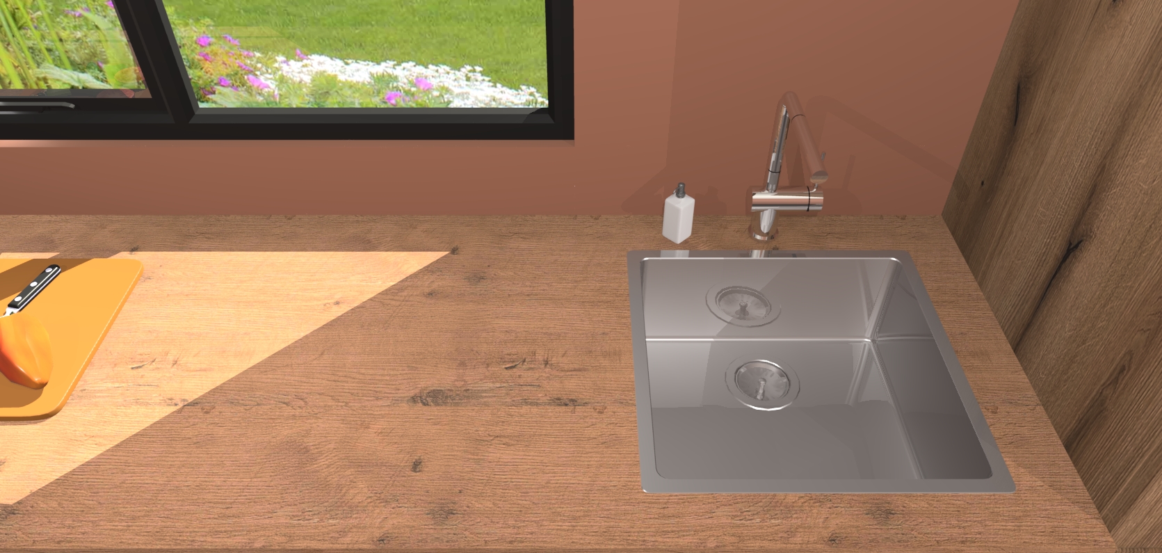 - De spoelbak is nog niet in gevreesd. Dit dient tijdens het werk gedaan te worden