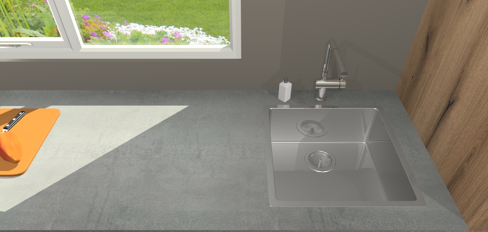 - De spoelbak is nog niet in gevreesd. Dit dient tijdens het werk gedaan te worden