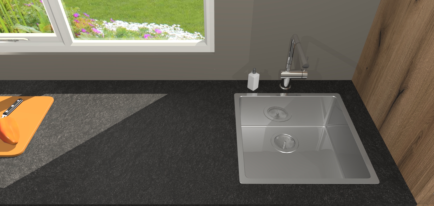 - De spoelbak is nog niet in gevreesd. Dit dient tijdens het werk gedaan te worden