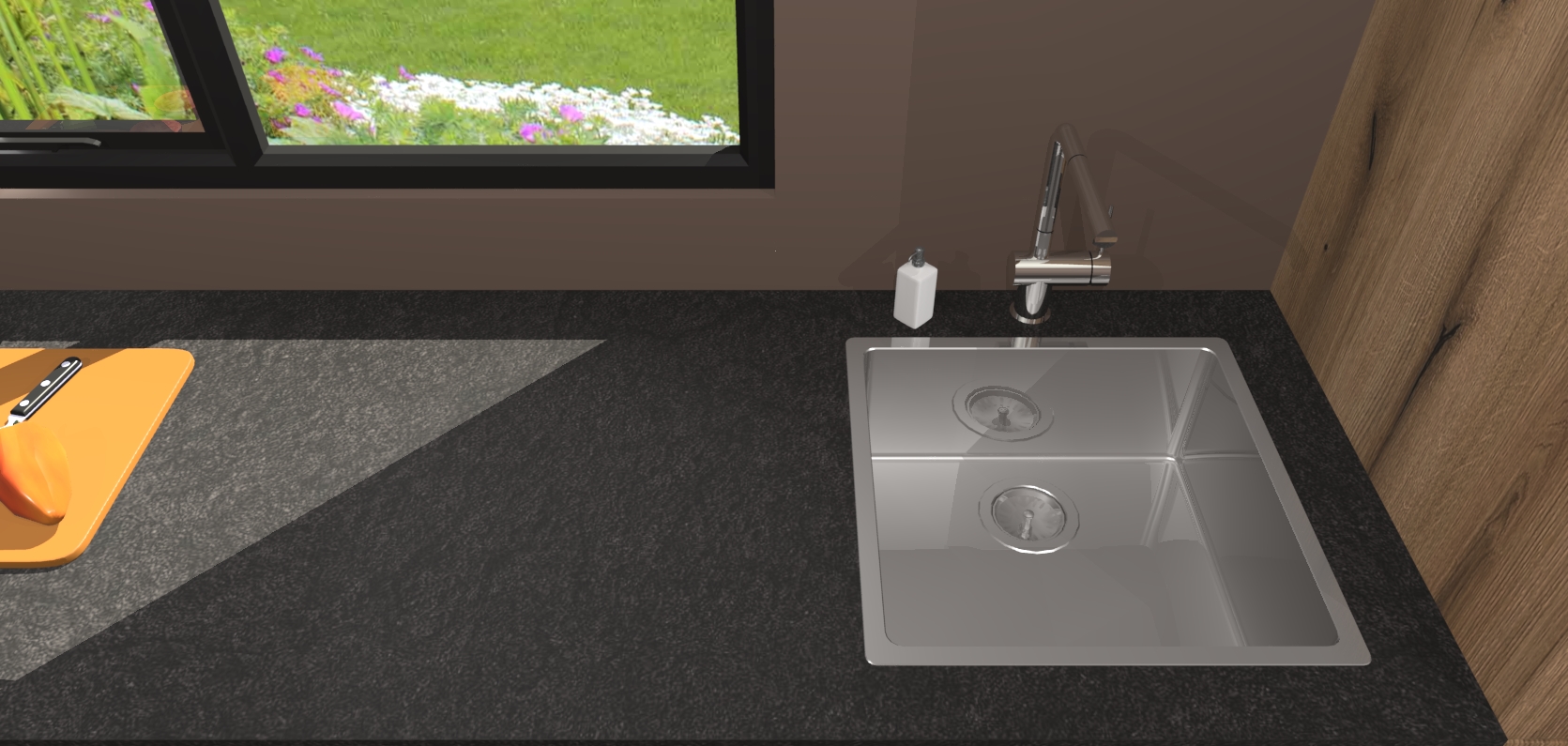 - De spoelbak is nog niet in gevreesd. Dit dient tijdens het werk gedaan te worden
