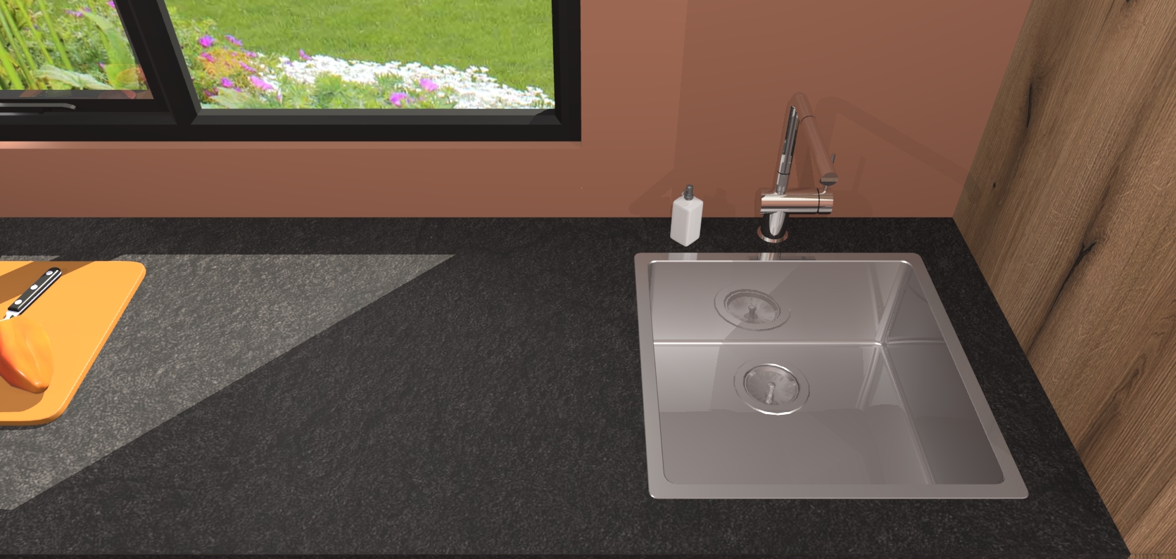 - De spoelbak is nog niet in gevreesd. Dit dient tijdens het werk gedaan te worden