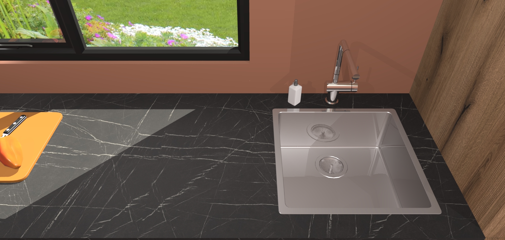 - De spoelbak is nog niet in gevreesd. Dit dient tijdens het werk gedaan te worden