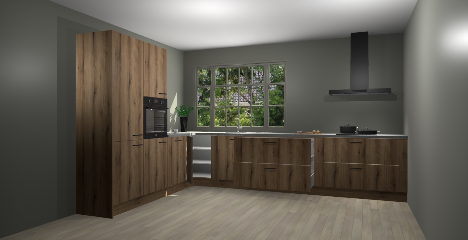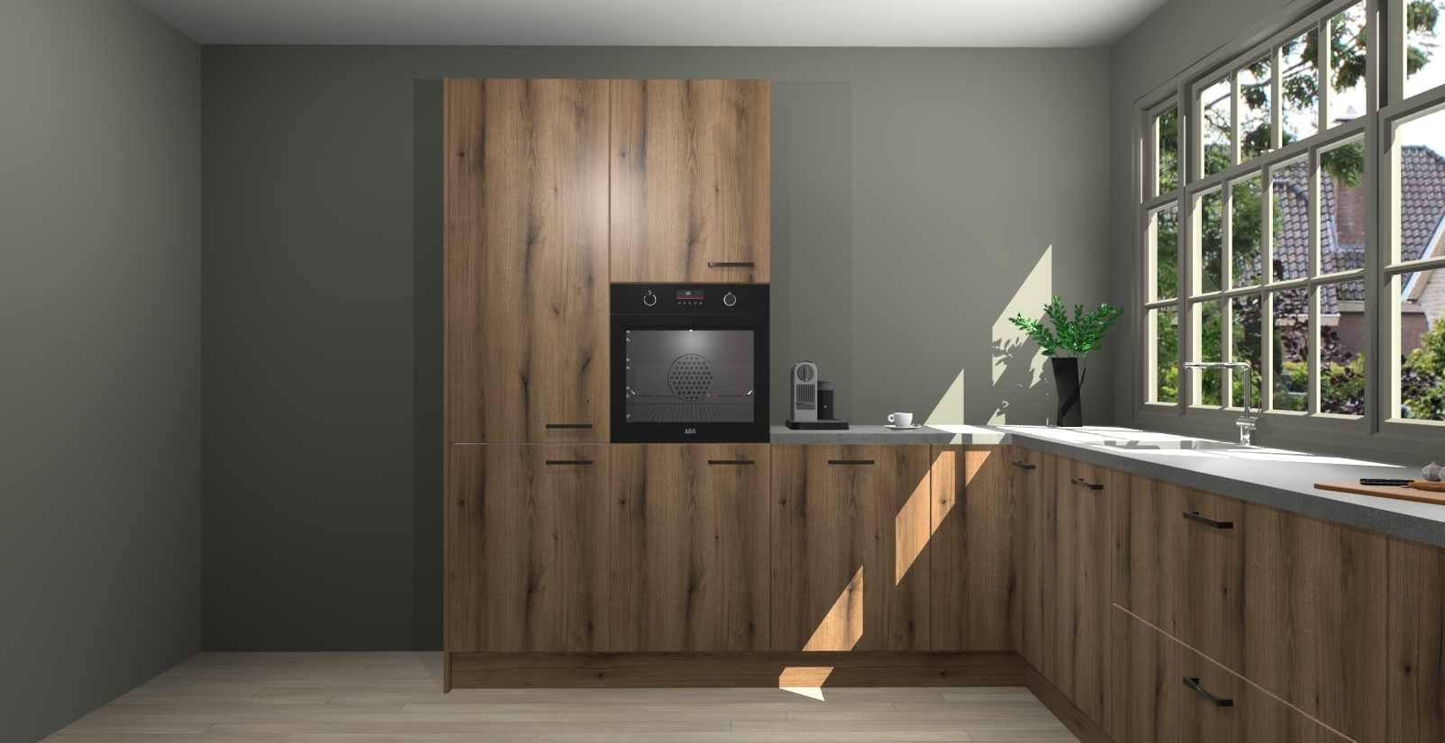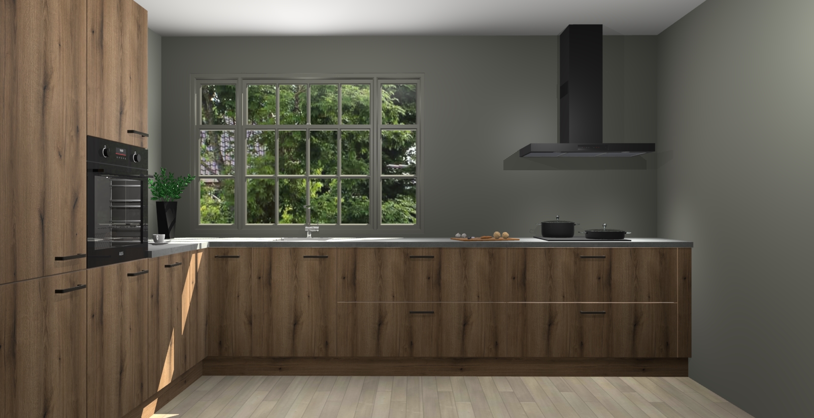 Kom dichtbij de perfecte keuken van uw dromen met de Goud Eiken keuken Malaga. Met een prachtige houtlook en eigentijds ontwerp, straalt deze keuken warmte en sfeer uit. Of u nu liefhebber bent van traditionele of moderne stijlen, er is genoeg ruimte om aan al uw behoeften te voldoen.