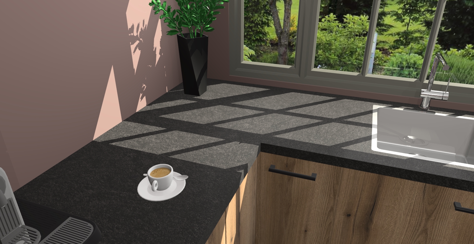 - Bij een hoekwerkblad zijn de hoeken in gevreesd en op maat gemaakt
