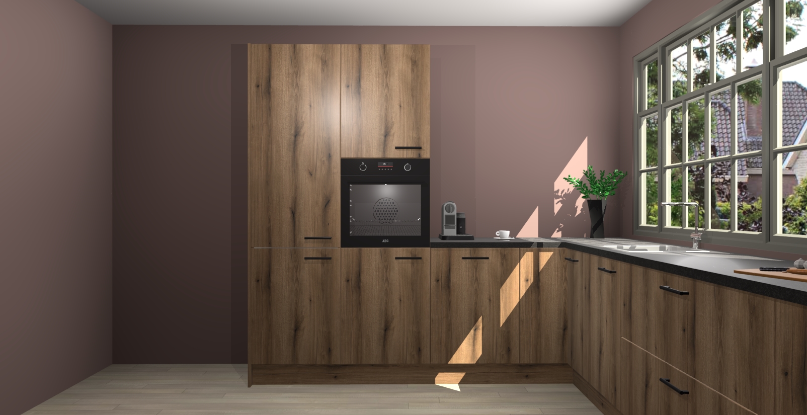 Kom dichtbij de perfecte keuken van uw dromen met de Goud Eiken keuken Malaga. Met een prachtige houtlook en eigentijds ontwerp, straalt deze keuken warmte en sfeer uit. Of u nu liefhebber bent van traditionele of moderne stijlen, er is genoeg ruimte om aan al uw behoeften te voldoen.