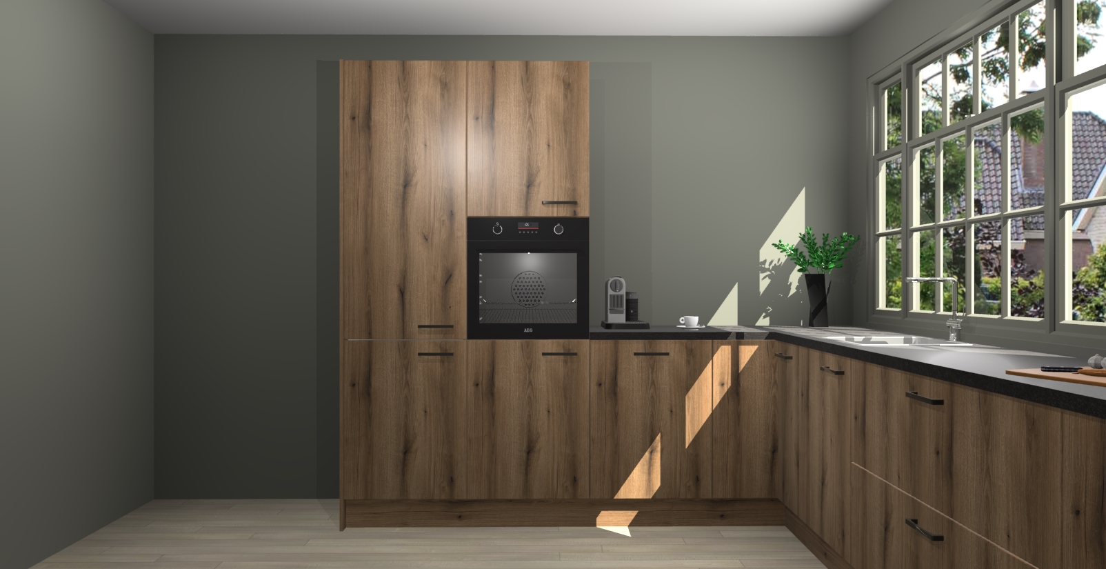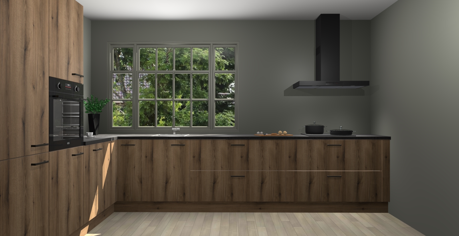 Kom dichtbij de perfecte keuken van uw dromen met de Goud Eiken keuken Malaga. Met een prachtige houtlook en eigentijds ontwerp, straalt deze keuken warmte en sfeer uit. Of u nu liefhebber bent van traditionele of moderne stijlen, er is genoeg ruimte om aan al uw behoeften te voldoen.