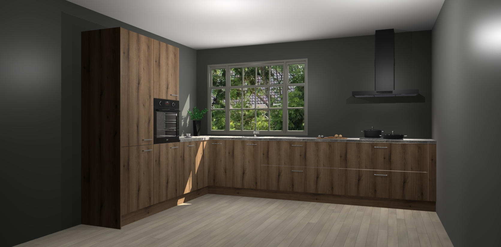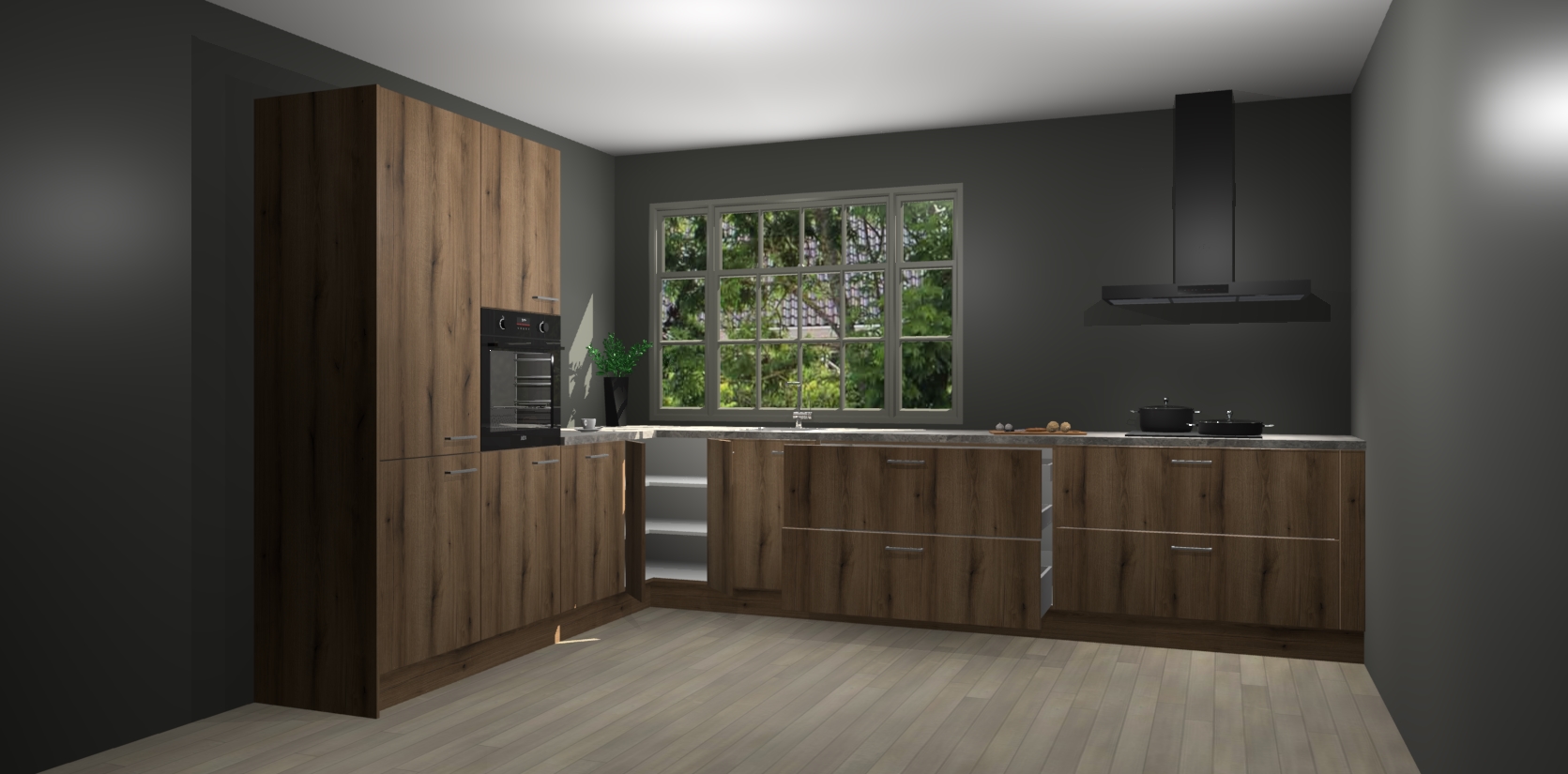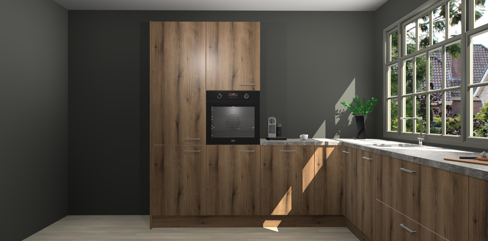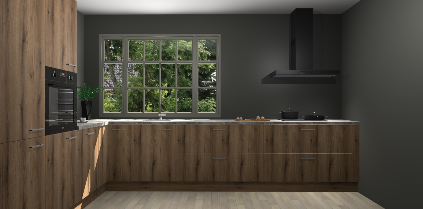 Kom dichtbij de perfecte keuken van uw dromen met de Goud Eiken keuken Malaga. Met een prachtige houtlook en eigentijds ontwerp, straalt deze keuken warmte en sfeer uit. Of u nu liefhebber bent van traditionele of moderne stijlen, er is genoeg ruimte om aan al uw behoeften te voldoen.
