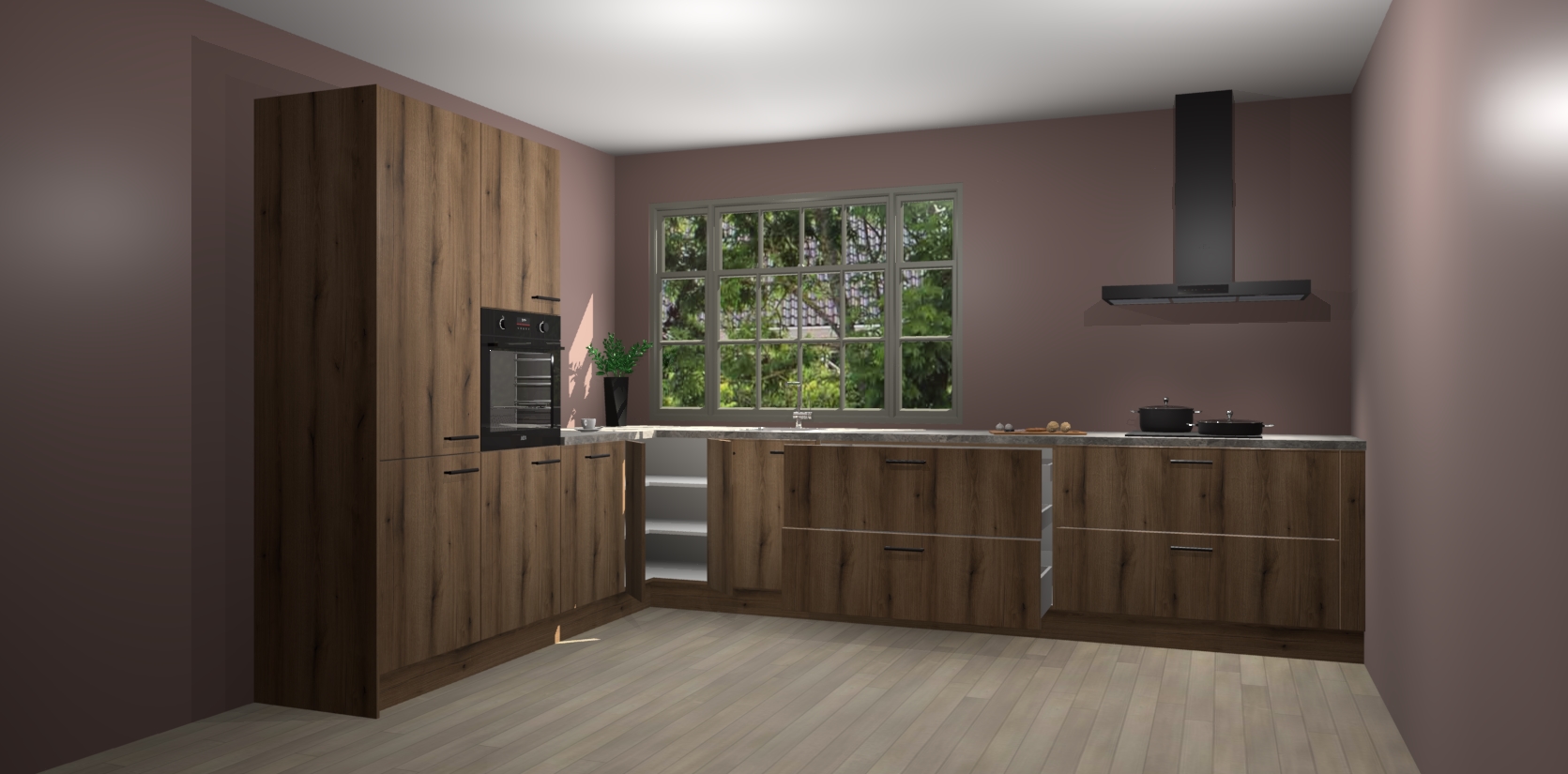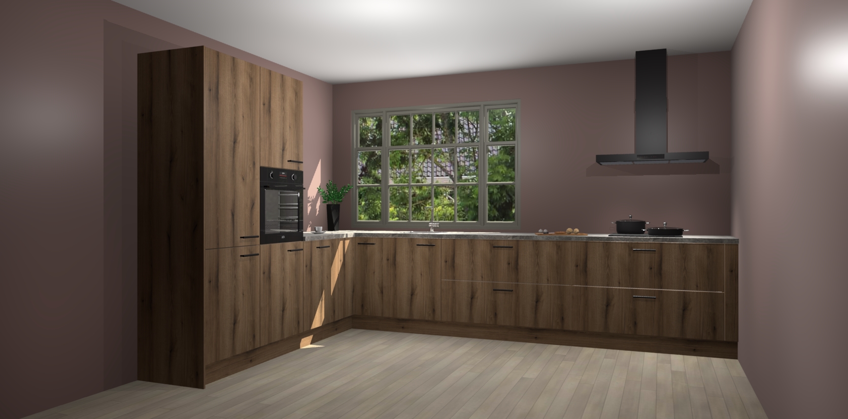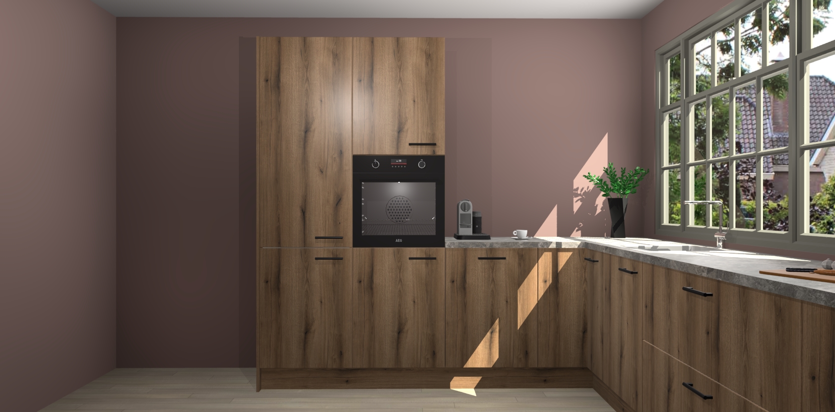 Kom dichtbij de perfecte keuken van uw dromen met de Goud Eiken keuken Malaga. Met een prachtige houtlook en eigentijds ontwerp, straalt deze keuken warmte en sfeer uit. Of u nu liefhebber bent van traditionele of moderne stijlen, er is genoeg ruimte om aan al uw behoeften te voldoen.