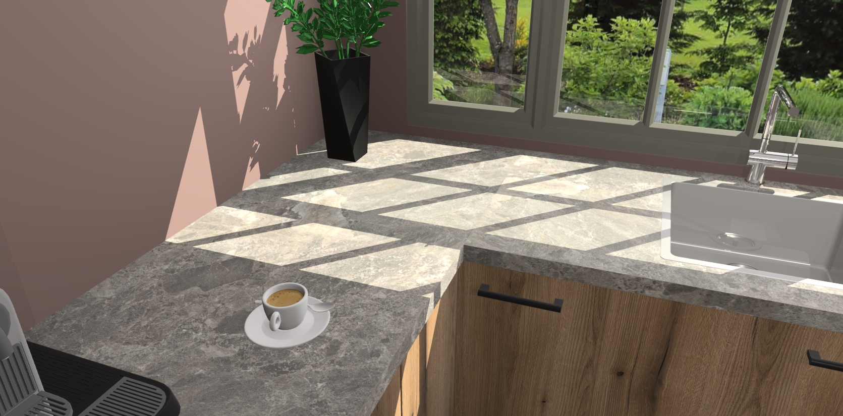 - Bij een hoekwerkblad zijn de hoeken in gevreesd en op maat gemaakt