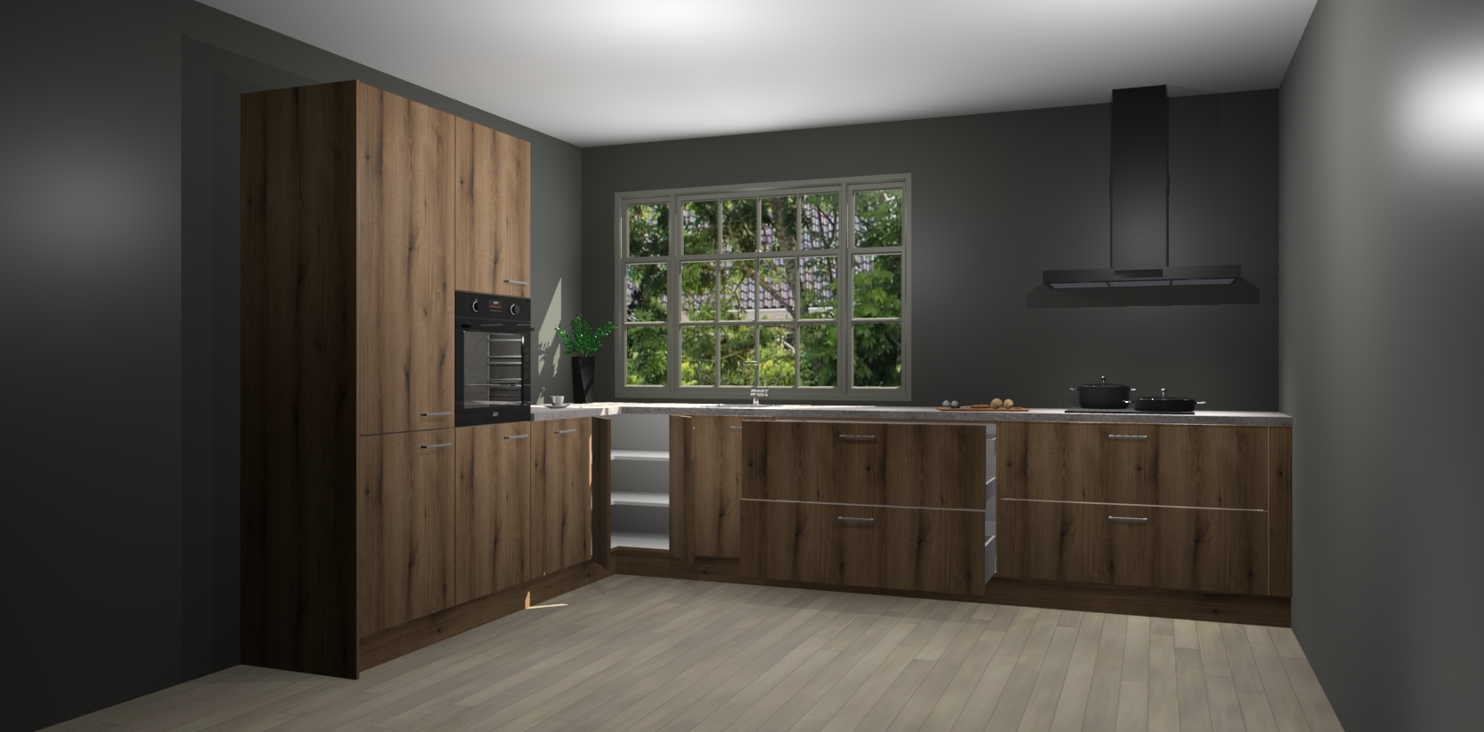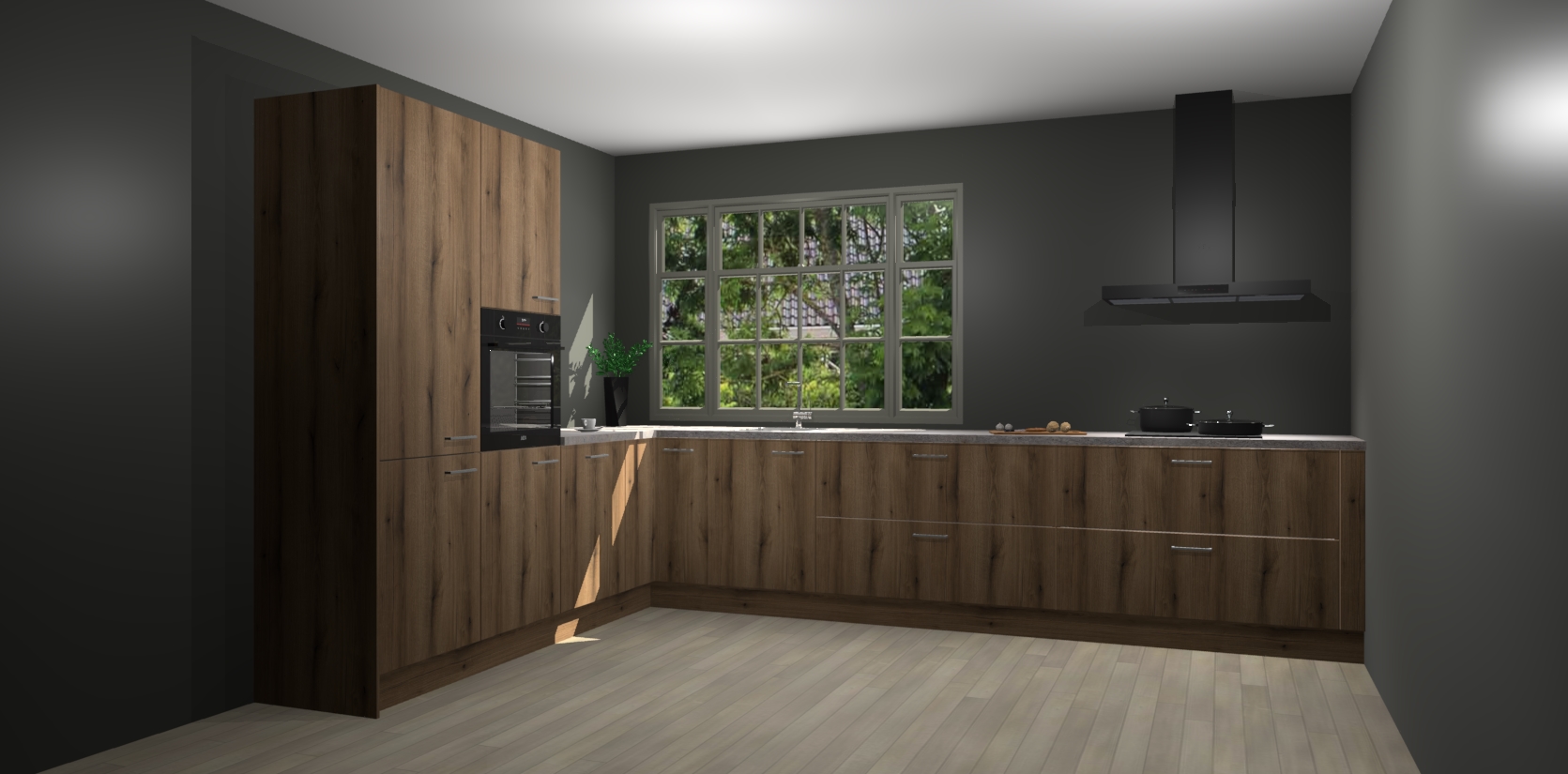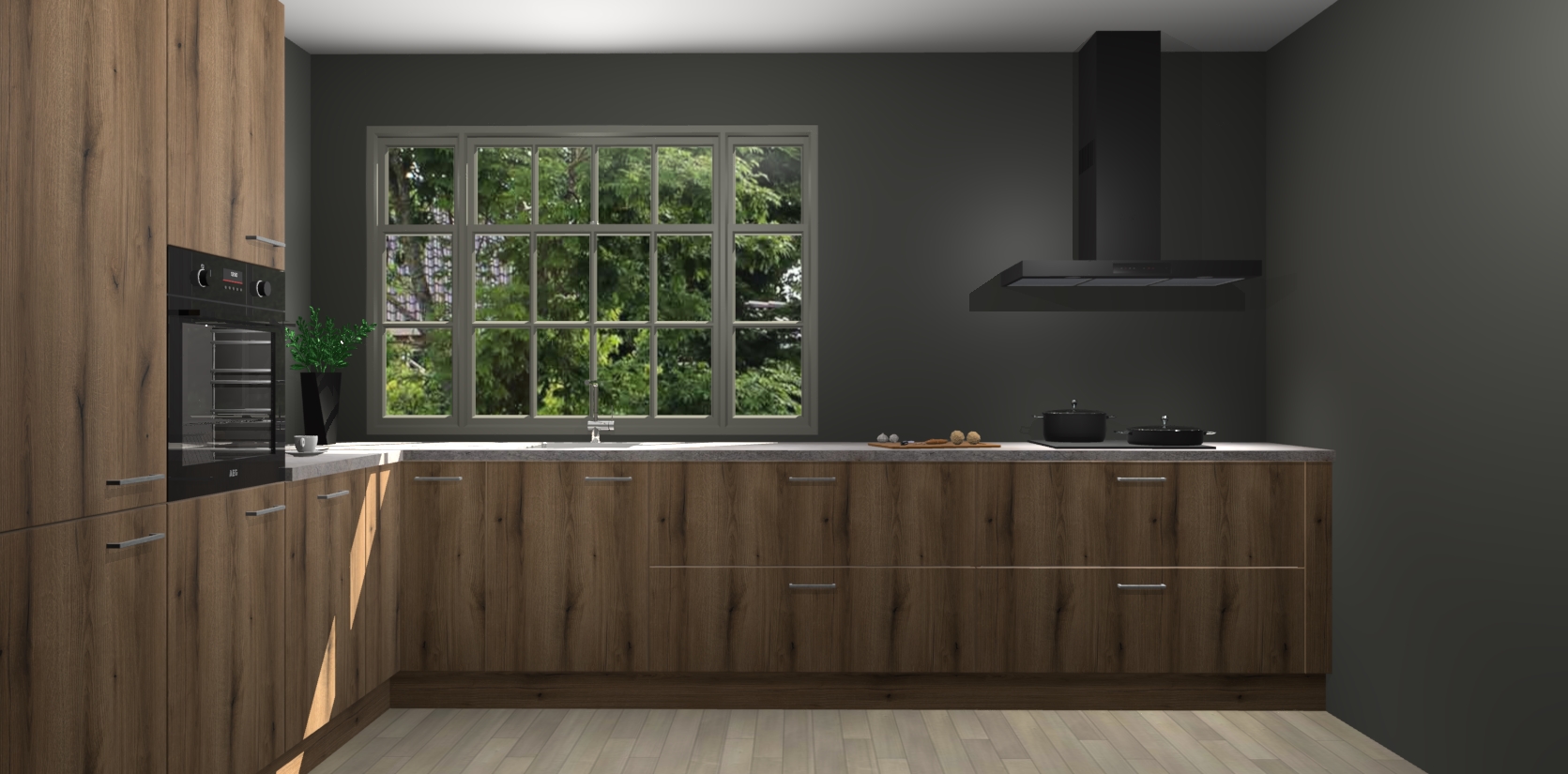 Kom dichtbij de perfecte keuken van uw dromen met de Goud Eiken keuken Malaga. Met een prachtige houtlook en eigentijds ontwerp, straalt deze keuken warmte en sfeer uit. Of u nu liefhebber bent van traditionele of moderne stijlen, er is genoeg ruimte om aan al uw behoeften te voldoen.