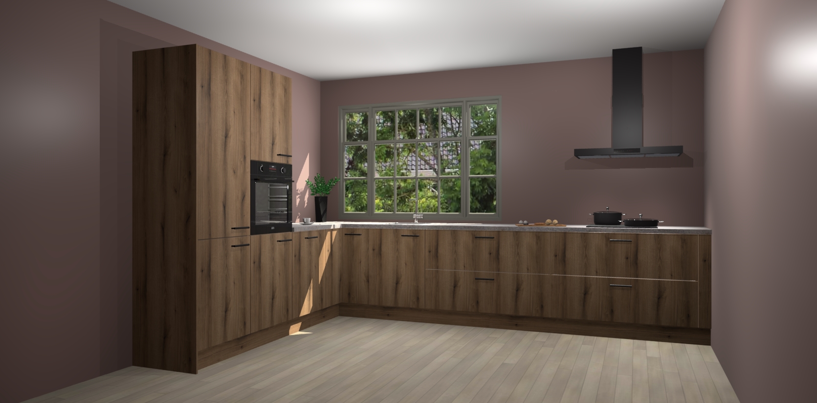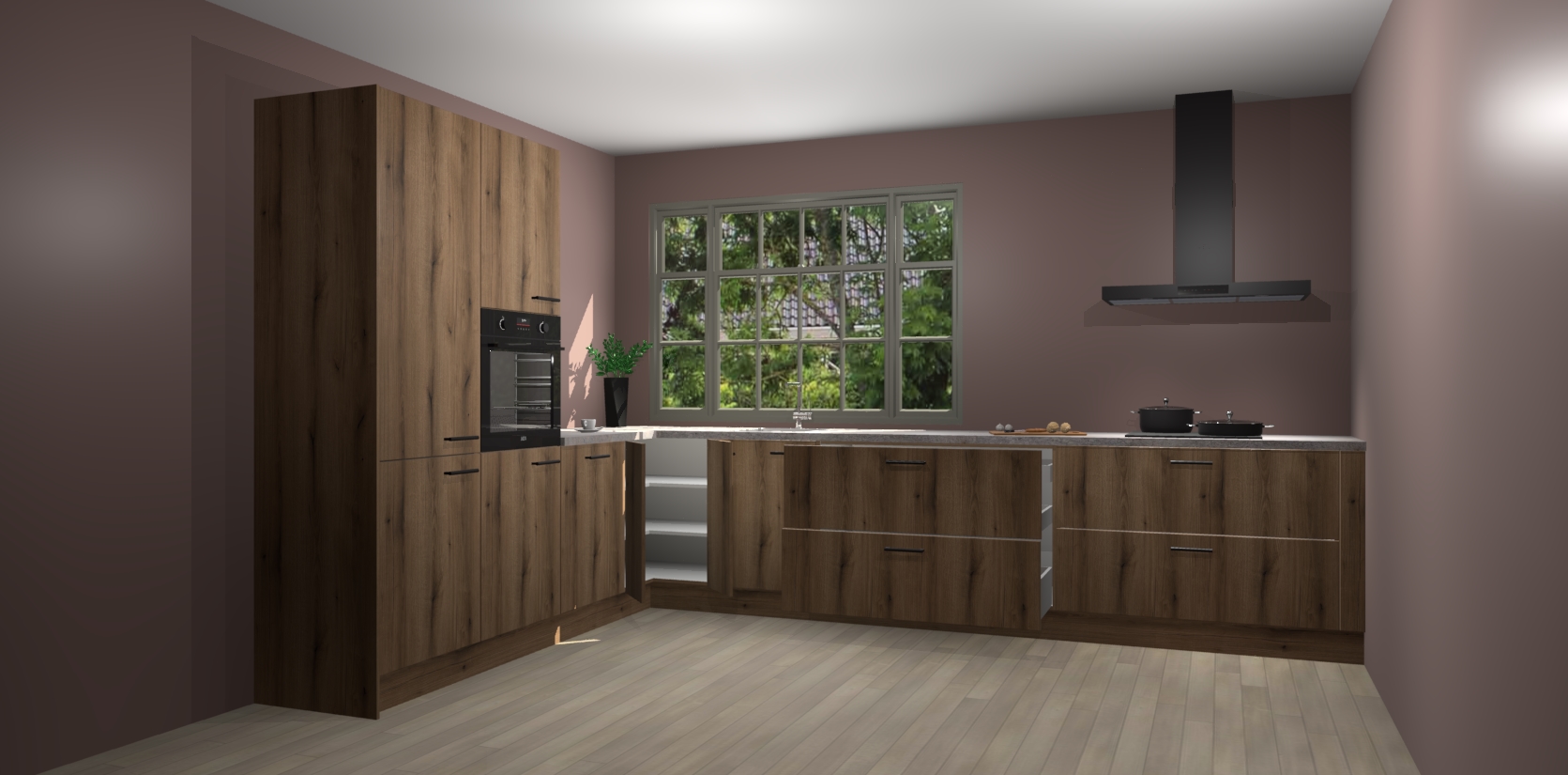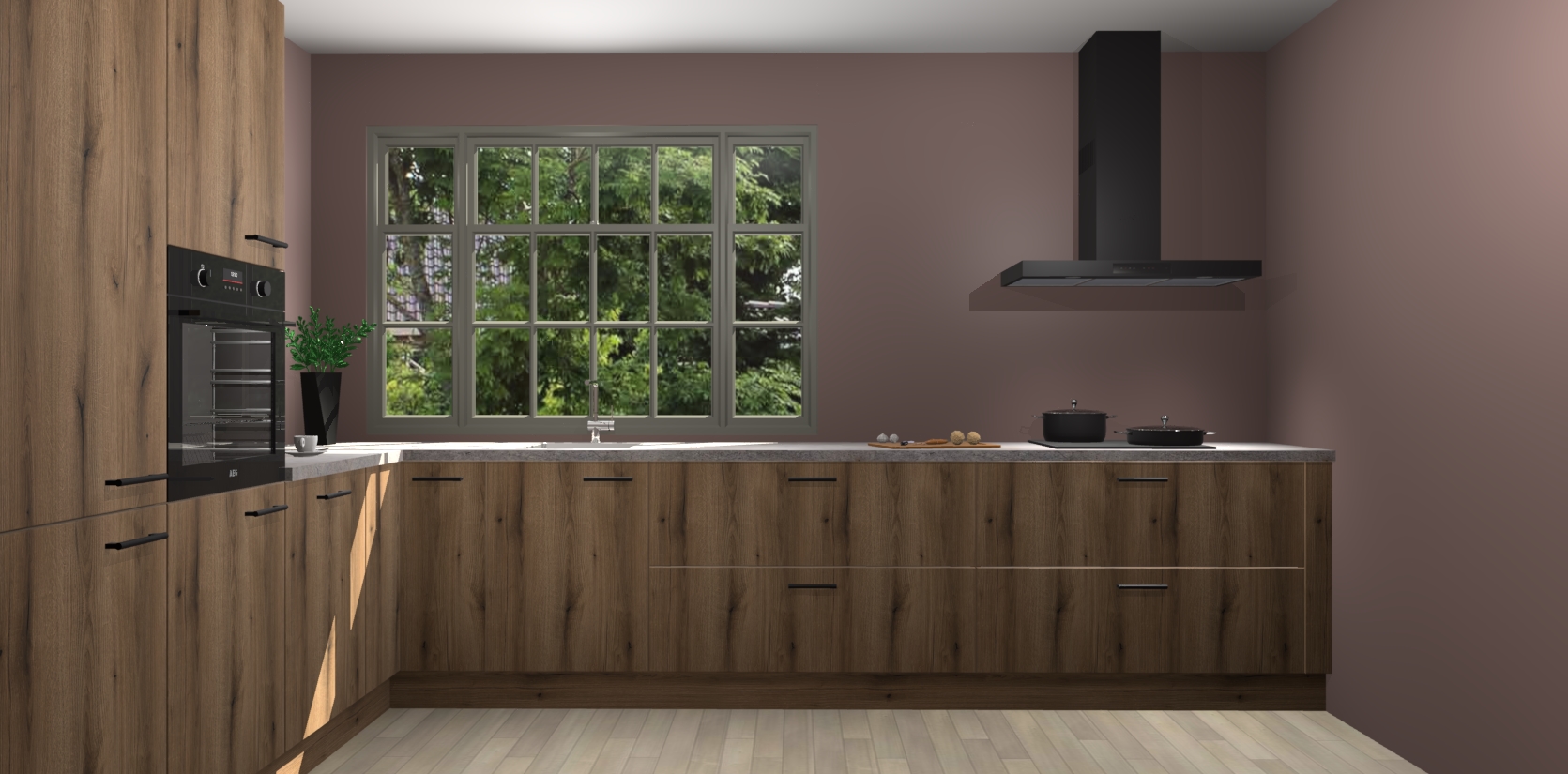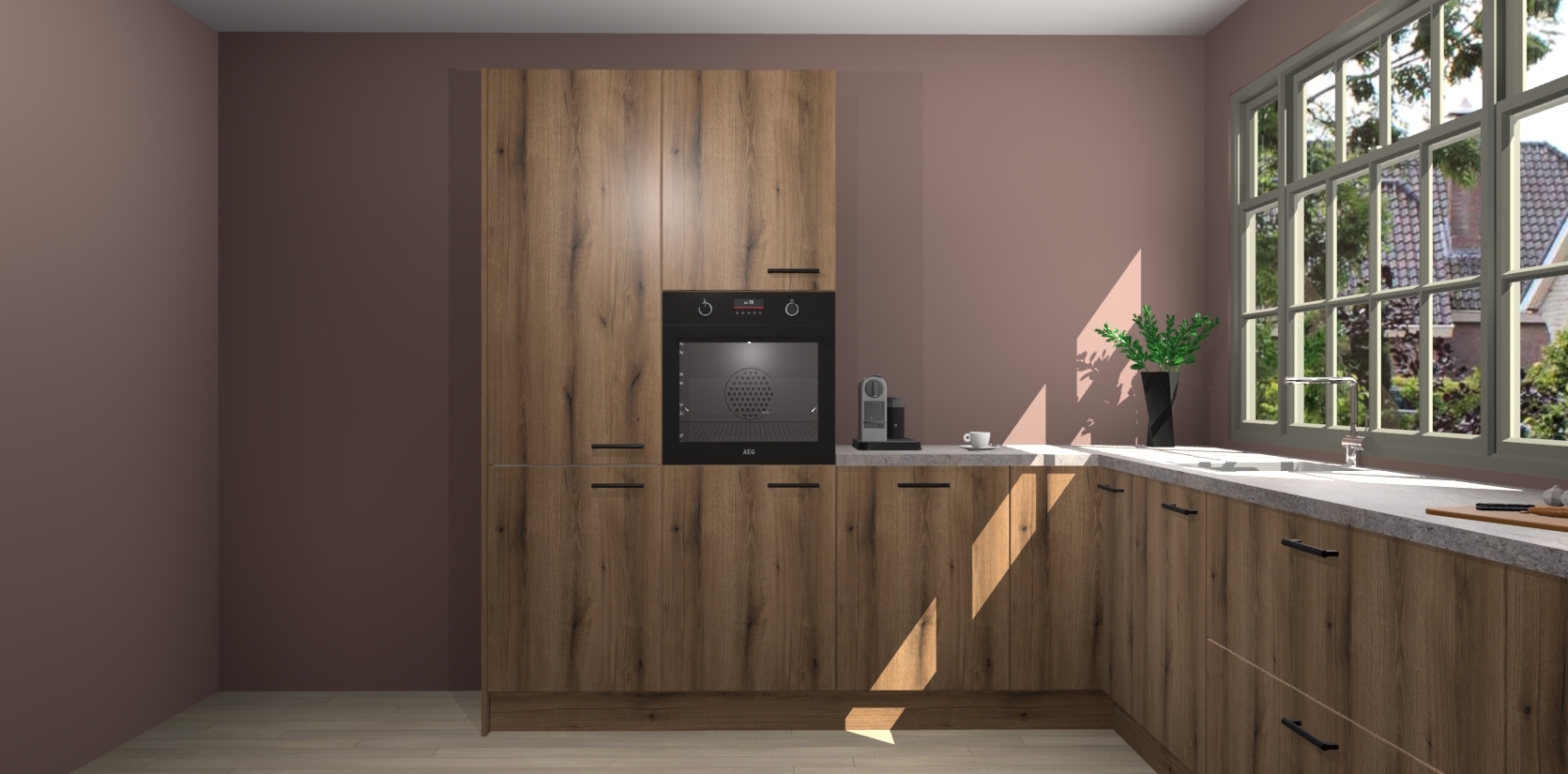 Kom dichtbij de perfecte keuken van uw dromen met de Goud Eiken keuken Malaga. Met een prachtige houtlook en eigentijds ontwerp, straalt deze keuken warmte en sfeer uit. Of u nu liefhebber bent van traditionele of moderne stijlen, er is genoeg ruimte om aan al uw behoeften te voldoen.