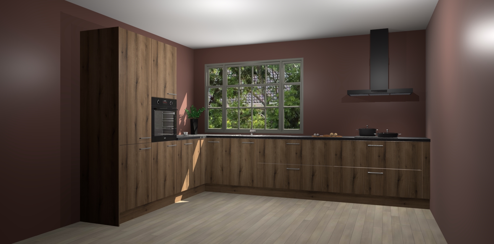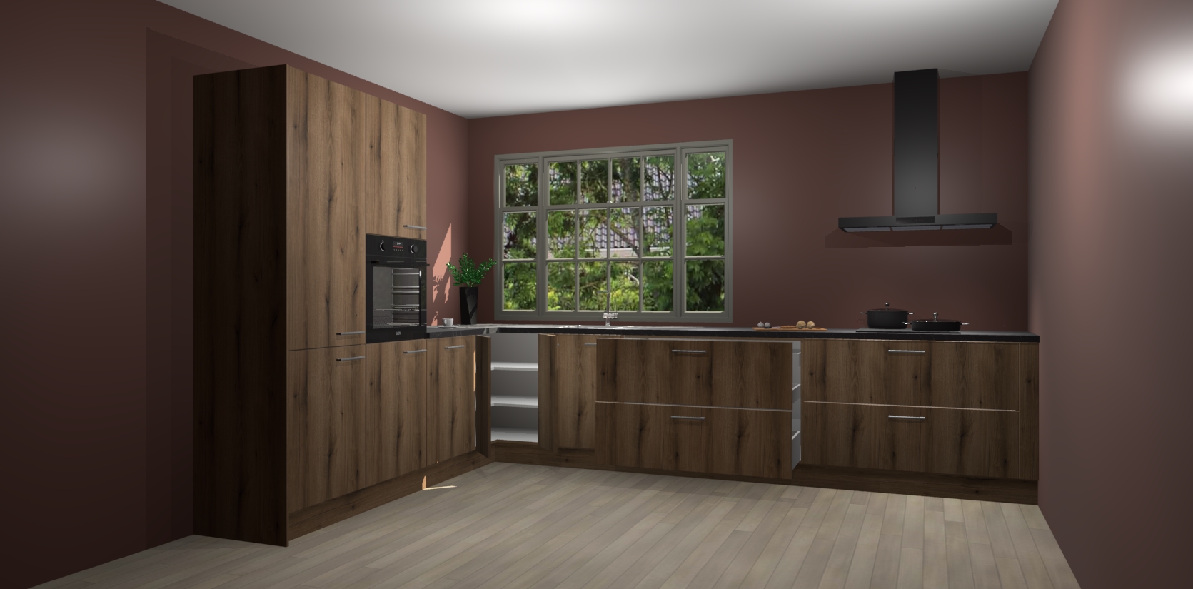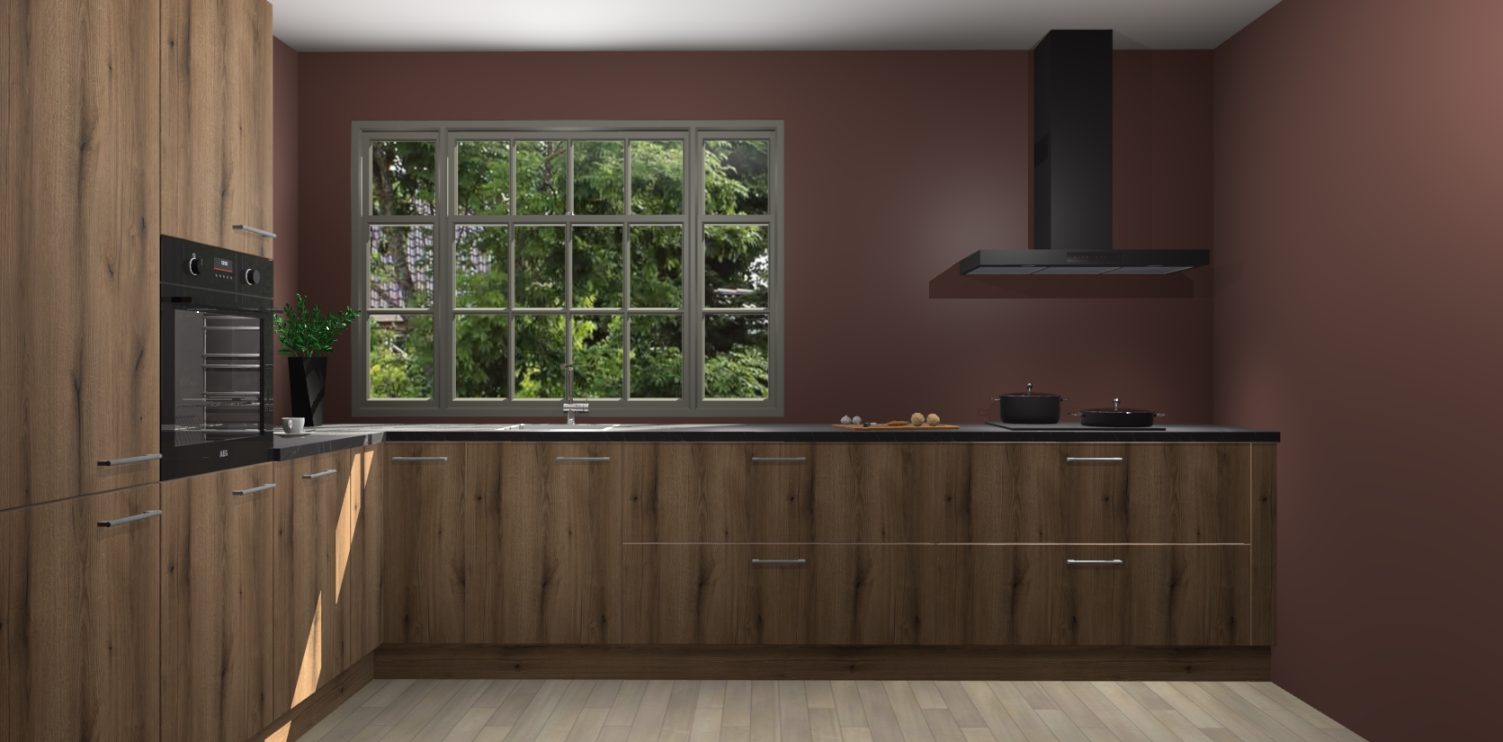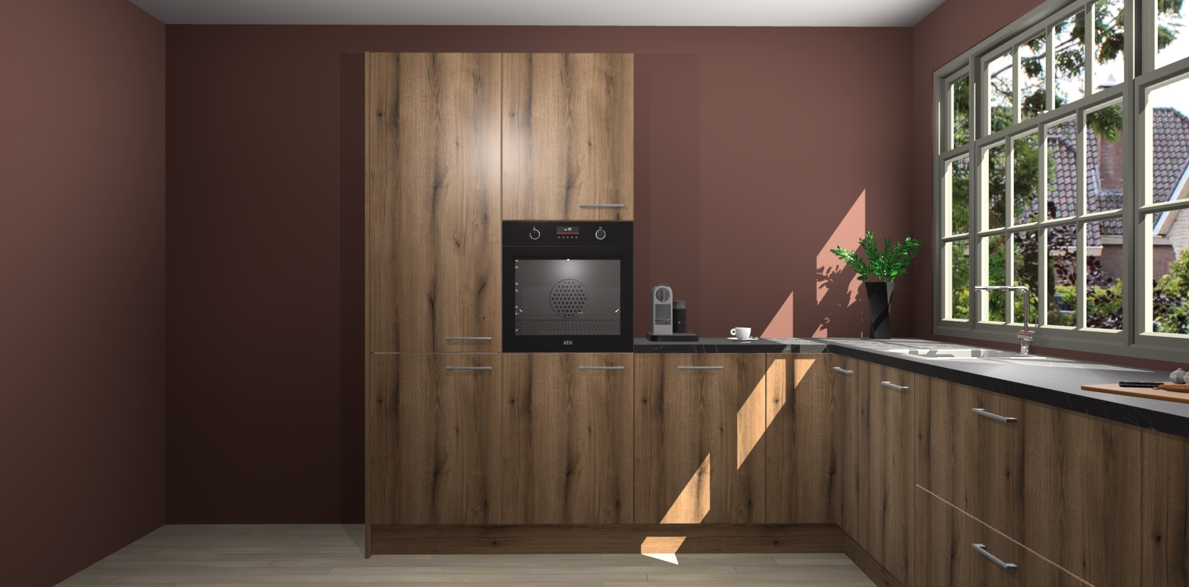 Kom dichtbij de perfecte keuken van uw dromen met de Goud Eiken keuken Malaga. Met een prachtige houtlook en eigentijds ontwerp, straalt deze keuken warmte en sfeer uit. Of u nu liefhebber bent van traditionele of moderne stijlen, er is genoeg ruimte om aan al uw behoeften te voldoen.