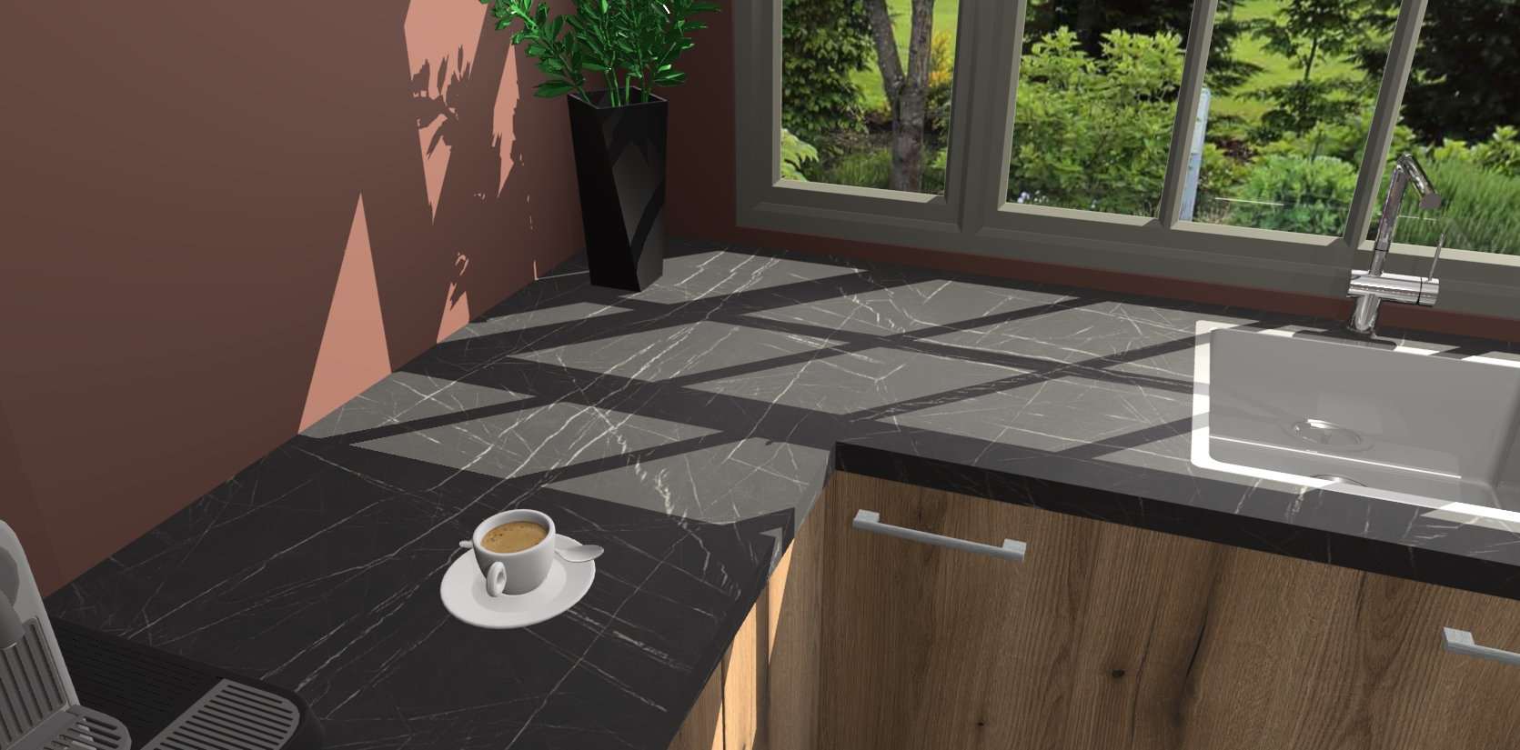 - Bij een hoekwerkblad zijn de hoeken in gevreesd en op maat gemaakt
