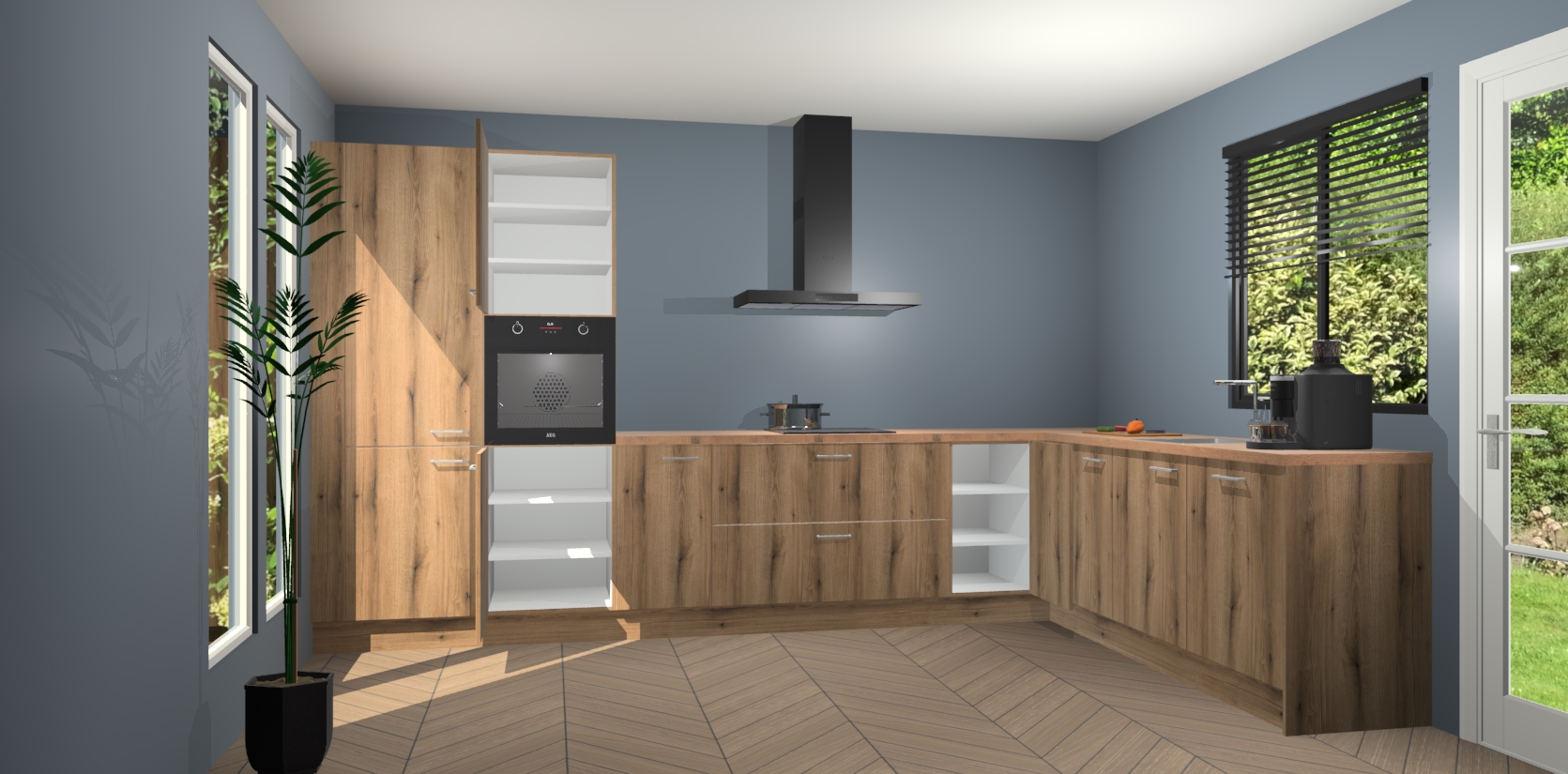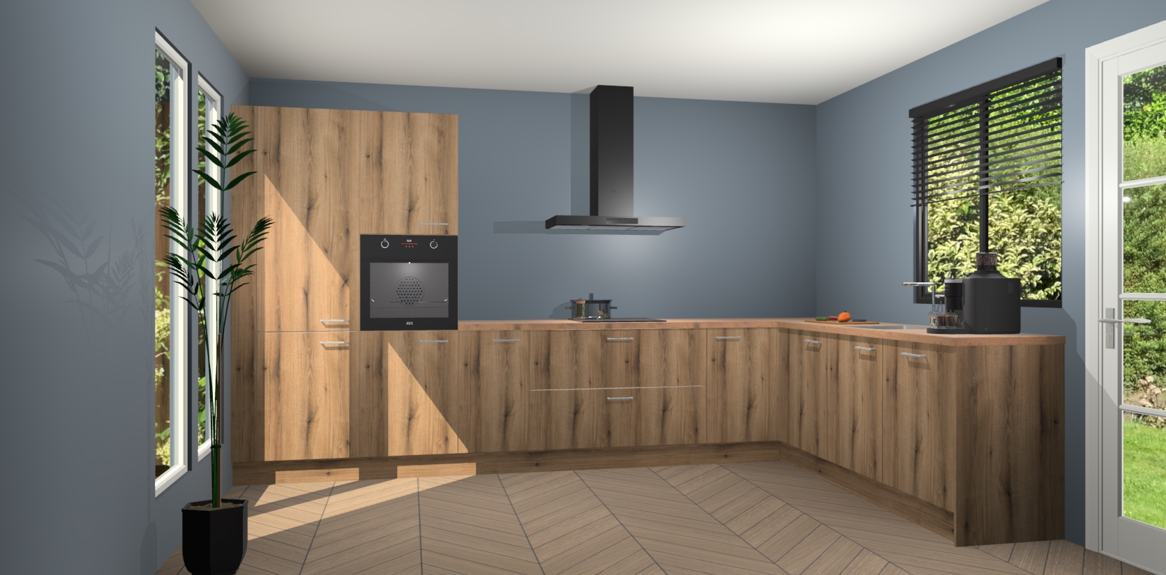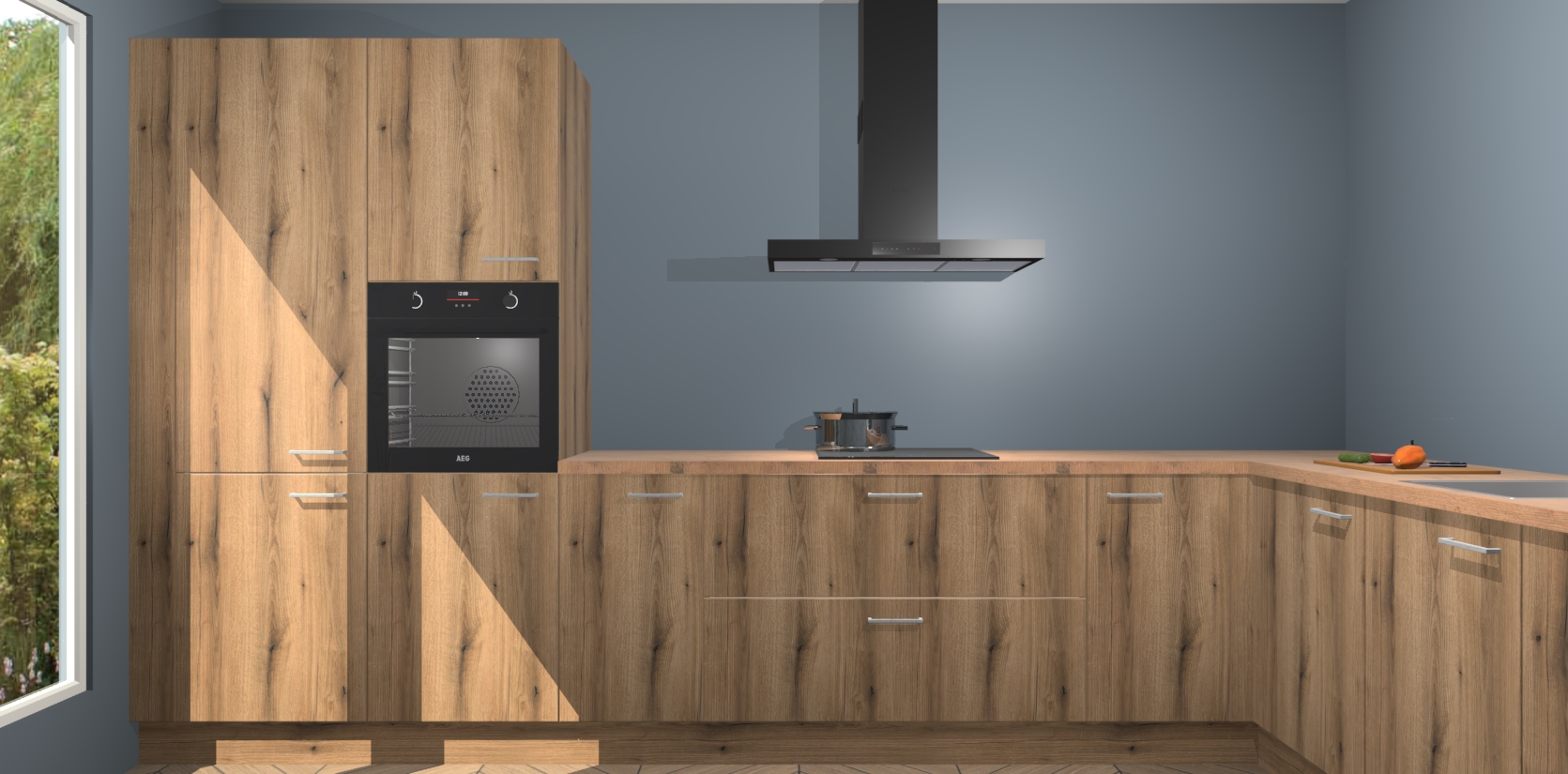Met een modern, tijdloos design en ruime opslagruimte, zult u zich in no-time thuis voelen in uw nieuwe keuken. Uw leven wordt eenvoudiger met de soft-close deuren die voor het ultieme stille comfort zorgen - geen geluid dat u stoort terwijl u kookt. Ook is de keuken voorzien van 5 ingebouwde apparaten: een oven, inductie kookplaat, afzuigkap, vaatwasser en koelkast. Deze kunnen gemakkelijk na bestelling worden bijgewerkt naar AEG - waardoor uw luxe ervaring compleet is.