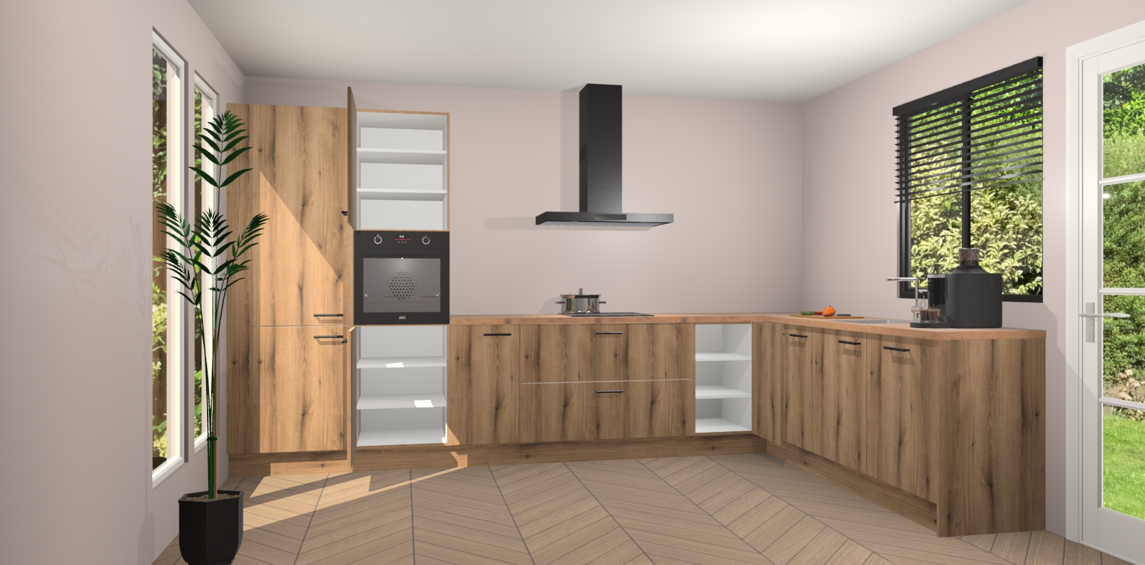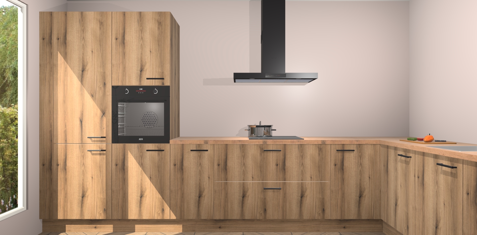 Met een modern, tijdloos design en ruime opslagruimte, zult u zich in no-time thuis voelen in uw nieuwe keuken. Uw leven wordt eenvoudiger met de soft-close deuren die voor het ultieme stille comfort zorgen - geen geluid dat u stoort terwijl u kookt. Ook is de keuken voorzien van 5 ingebouwde apparaten: een oven, inductie kookplaat, afzuigkap, vaatwasser en koelkast. Deze kunnen gemakkelijk na bestelling worden bijgewerkt naar AEG - waardoor uw luxe ervaring compleet is.