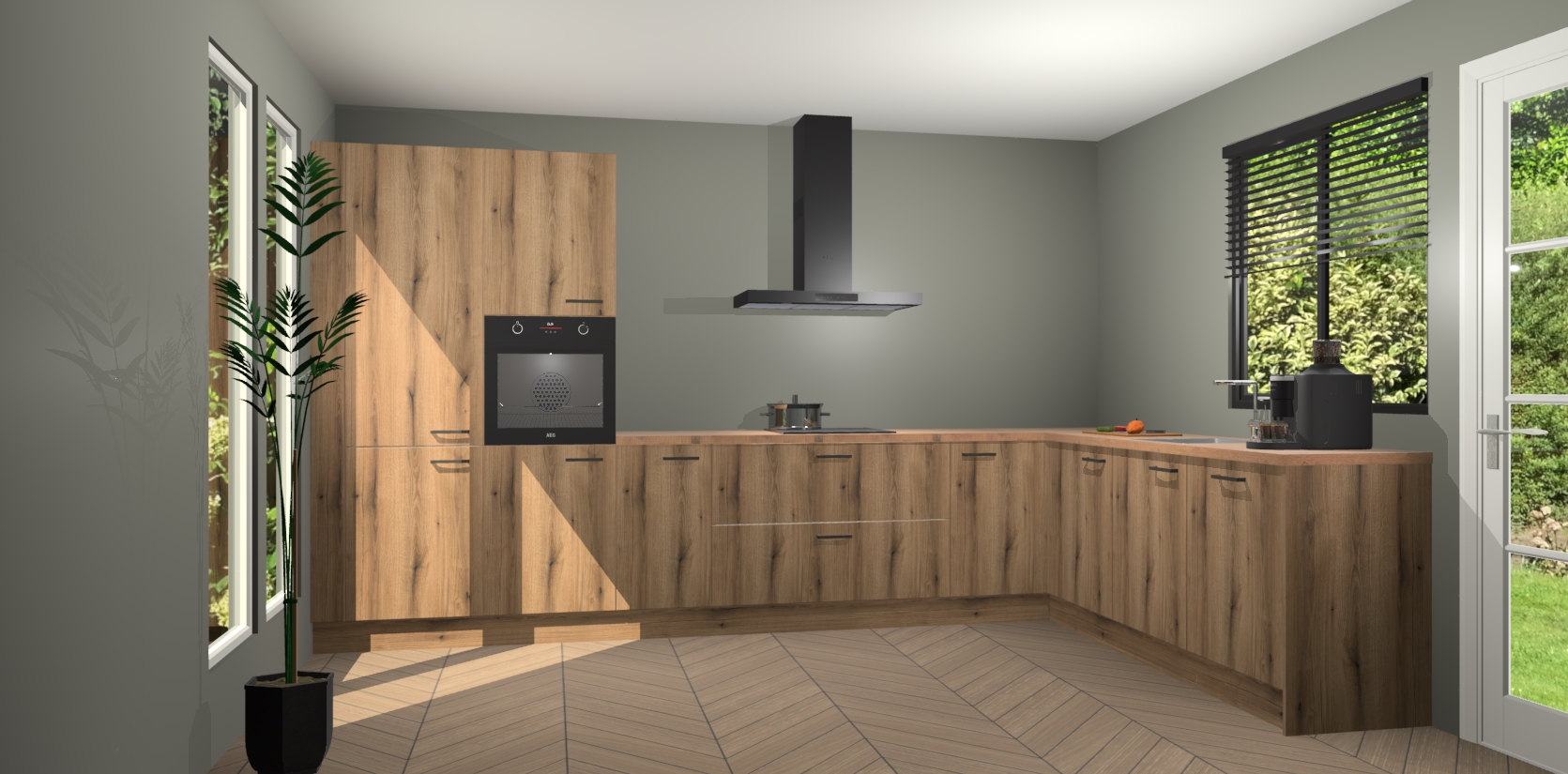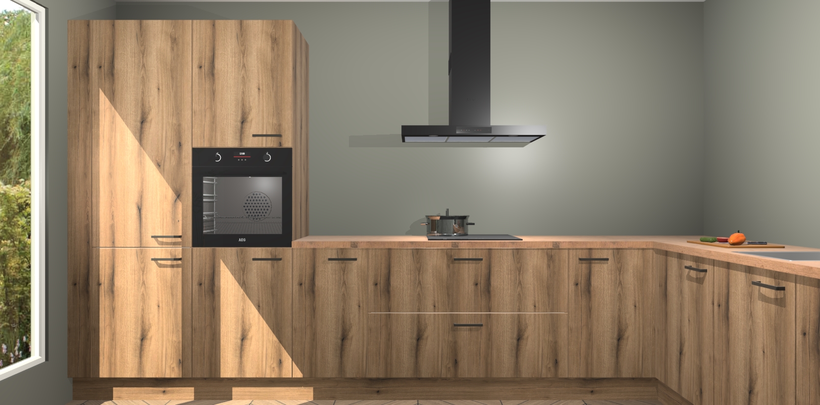 Met een modern, tijdloos design en ruime opslagruimte, zult u zich in no-time thuis voelen in uw nieuwe keuken. Uw leven wordt eenvoudiger met de soft-close deuren die voor het ultieme stille comfort zorgen - geen geluid dat u stoort terwijl u kookt. Ook is de keuken voorzien van 5 ingebouwde apparaten: een oven, inductie kookplaat, afzuigkap, vaatwasser en koelkast. Deze kunnen gemakkelijk na bestelling worden bijgewerkt naar AEG - waardoor uw luxe ervaring compleet is.